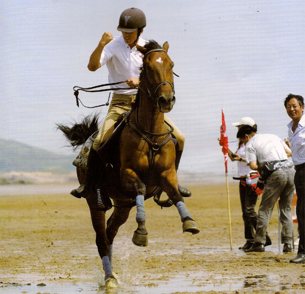 9月5日大早,帶著一顆滿懷憧憬的心,我和同事們一起在濱海路上奔馳,迫不及待地渴望親眼見證沙灘馬術(shù)比賽的情景。從小在北京長(zhǎng)大,但對(duì)海的認(rèn)識(shí)不深,尤其在海灘上的馬術(shù)比賽更是從來沒有見過。 早上9點(diǎn),我們到達(dá)了比賽所在的田橫島附近的海灘。這里的海水正在慢慢地退卻,一道道海水侵襲過的印痕就是證據(jù)。聽著潮水碰擊地面的聲音,看著海浪拍打岸邊濺起的銀花,我似乎已然淋漓盡致地舒暢了一把。在這片寧靜的海灘上,心靈中的悄悄話就是對(duì)蔚藍(lán)色的憧憬;風(fēng),是咸咸的,帶著遠(yuǎn)行漁船的澀腥味;被海浪沖到岸上小小螃蟹,正在快速而敏捷地移動(dòng)著,匆匆尋找能棲身的小屋,眼睛里還閃爍著驚奇…誰能想到,再過半個(gè)小時(shí),這里將會(huì)人聲鼎沸,一場(chǎng)精彩的沙灘馬術(shù)比賽即將打響。遠(yuǎn)處,賽事的一些工作人員正在緊張地丈量著桶與桶之間地距離,一場(chǎng)激烈的繞桶比賽即將上演;還有一些工作人員正在將彩旗插在有較深的坑洼處,提醒速度賽的選手們注意安全;遠(yuǎn)處,一艘擱淺的漁船和大海構(gòu)成了比賽背景,也將見證今天冠軍的誕生。 隨著太陽漸漸升高,今天的主人公們--那群可愛的馬兒紛紛踏上了他們的“領(lǐng)地”。東道主寶湖馬術(shù)俱樂部于總告訴我,現(xiàn)在的海灘是最好的馬匹運(yùn)動(dòng)的場(chǎng)地。 9點(diǎn)30分,田橫島附近沙灘上,由中國馬協(xié)新聞委員會(huì)主任蔡猛主持的寶湖杯沙灘馬術(shù)比賽正式開始了,青島市委汪廣深副秘書長(zhǎng)、青島市體育局周鵬舉局長(zhǎng)、青島市體育總會(huì)林志偉副主席、青島市體育局競(jìng)技處陳勇處長(zhǎng)以及即墨等領(lǐng)導(dǎo)紛紛前來觀看從未見過的比賽。五面繡有參賽隊(duì)名字的黃色旗幟在海風(fēng)的吹佛下迎風(fēng)飄揚(yáng),這五支參賽隊(duì)分別為:登程馬術(shù)俱樂部隊(duì)、浩洋馬術(shù)俱樂部隊(duì)、寶湖山莊馬術(shù)俱樂部隊(duì)、德瑞馬術(shù)俱樂部隊(duì)以及鳳凰馬術(shù)俱樂部隊(duì)。 首先進(jìn)行的是馬術(shù)繞桶比賽,分為男子、女子業(yè)余組和專業(yè)三個(gè)組別的比賽。選手賽前已完成了抽簽決定騎乘哪一匹馬和出場(chǎng)順序。而本次比賽的裁判員很多都是初次相逢,來自各個(gè)馬術(shù)隊(duì)的人員和志愿者分布在賽場(chǎng)各處。 青島的馬術(shù)繞桶項(xiàng)目正處于起步階段,馬匹都是剛剛接受繞桶訓(xùn)練時(shí)間都非常短,看得出在業(yè)余組的比賽中,馬匹還沒有形成見桶便繞的習(xí)慣,騎手們?cè)谵D(zhuǎn)彎時(shí)要費(fèi)更大的力氣也浪費(fèi)了時(shí)間。雖然成績(jī)不屬于佳績(jī),但從騎手的身上讓我看到了果斷、勇敢、遇事不慌的素質(zhì),真是難能可貴,每組選手經(jīng)過兩輪的比賽后,最終取最佳成績(jī)進(jìn)行排名。 比賽過程中讓我印象最深刻的是一名年僅9歲的小騎手宋鈺。他騎著矮馬在賽場(chǎng)上的那股不服輸?shù)膭艃海诵●R也矮小,博得了觀眾的陣陣掌聲,當(dāng)然他的馬上功夫也是有幾年的積淀。那可愛的樣子也讓成年人不由得笑得燦爛,大家似乎看到了青島馬術(shù)運(yùn)動(dòng)的希望,我們可以想象著小宋鈺長(zhǎng)大后在賽場(chǎng)上會(huì)是怎樣一副畫面呢? 專業(yè)組中,各個(gè)馬場(chǎng)的優(yōu)秀騎手和馬匹協(xié)力合作發(fā)揮都十分出色。來自寶湖山莊馬術(shù)俱樂部的朝格圖與他的馬匹讓我眼前一亮。在北京,我也曾親歷過不少優(yōu)秀的繞桶比賽,而朝格圖的表現(xiàn)可與全國優(yōu)秀選手相媲姜,甚至讓我看到了世界大賽中繞桶時(shí)刻的影子。馬匹急停時(shí)蹄子深深插入沙地,馬身向桶側(cè)傾斜,繞過桶后具有極強(qiáng)的爆發(fā)力。我當(dāng)時(shí)在想,如果換成我在馬上會(huì)不會(huì)已被馬的爆發(fā)力彈飛了呢? 看看這些牛仔們出色的表現(xiàn),只坐在看臺(tái)心里癢得厲害,和裁判員商議后我騎著寶湖山莊馬術(shù)俱樂部的一匹大青馬出現(xiàn)在女子業(yè)余組中。迎著風(fēng),踏著遺留的海水。乘著最可愛的動(dòng)物馬匹縱情馳騁,海風(fēng)把我的長(zhǎng)發(fā)吹散在空中,風(fēng)兒淘氣地鉆進(jìn)我的衣領(lǐng)把襯衫撐得鼓鼓的,一種從未有過的人馬海灘情油然而生,我想,這份青島海邊騎乘的快樂,將永遠(yuǎn)留存在我的記憶之中。 繞桶賽結(jié)束后,沙灘上就成了純血馬的天地,速度賽即將粉墨登場(chǎng)。1500米的比賽,選手們要在750米處折返。途中還有幾個(gè)由于地勢(shì)低而積存海水的洼地,馬匹要在能力范圍內(nèi)以最快的速度通過,每三位選手為一組同時(shí)比賽,業(yè)余組專業(yè)各三組,最終按照全部成績(jī)進(jìn)行排名。全速奔馳的駿馬、飛濺起的晶瑩浪花,大海上遠(yuǎn)處的帆船已成為攝影家的天堂。 賽后,青島市體育總會(huì)林志偉副主席被牛仔們的精神表現(xiàn)所折服,本不懂馬術(shù)的林副主席看完比賽也激發(fā)了內(nèi)心對(duì)馬的渴望,當(dāng)即拜鳳凰城馬術(shù)俱樂部梁教練為師學(xué)習(xí)騎馬,并表示要全力支持青島馬術(shù)運(yùn)動(dòng)的發(fā)展,她說:“我希望馬術(shù)運(yùn)動(dòng)能夠成為帆船之外青島體育的又一個(gè)亮點(diǎn)?!?/div> 文/何鑫 |