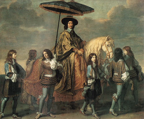 查理·勒布倫(1619-90) 大法官塞古埃騎馬像,布面油畫 私人藏品 查理·勒布倫出生于法國巴黎,他的父親從事藝術(shù)行業(yè),是當(dāng)?shù)匦∮忻麣獾牡窨碳?。在勒布?15 歲時,就已經(jīng)為紅衣主教黎塞留工作。隨后,他幸運(yùn)地遇到了人生中的貴人——大法官皮埃爾·塞古埃,塞古埃很欣賞他的才華,資助他去意大利留學(xué)深造,這一堅持就是長達(dá) 4年的時間。在意大利,勒布倫曾為烏爾巴諾八世和烏爾巴諾三世工作,這段經(jīng)歷幫助他迅速成長了起來。 留學(xué)結(jié)束,他回到法國,取得了更加輝煌的成就。1648 年,勒布倫積極促成了皇家繪畫與雕塑藝術(shù)學(xué)院的創(chuàng)立。又過了幾年,勒布倫結(jié)識了當(dāng)時頗負(fù)盛名的財政大臣福格,福格委派勒布倫裝飾沃克斯子爵的城堡,并以出色的工作成績博得大主教馬扎林的欣賞。馬扎林熱情地為勒布倫引薦,見到了當(dāng)時的國王路易十四及王太后。1660 年,路易十四派勒布倫至法國北部城市楓丹白露工作,并封他為“國王御用畫家”,他是第一位得此殊榮的人。勒布倫深得國王寵愛,事業(yè)如日中天,成為了戈布蘭工廠的負(fù)責(zé)人,承接了不計其數(shù)的宮殿設(shè)計與裝潢工作。很遺憾的是,勒布倫因長期病痛折磨,最終于巴黎去世。 勒布倫的繪畫創(chuàng)作恰到好處地反映出當(dāng)代藝術(shù)的風(fēng)格與品味,略帶華麗感的畫面讓人印象深刻。這幅《大法官塞古埃騎馬像》描繪的是 1660 年,大法官塞古埃跟隨國王路易十四進(jìn)入巴黎時,趾高氣揚(yáng)的景象。塞古埃(1588-1672)是法國政治家、司法官,公爵出身,曾任掌璽大臣、法國首席大法官,他是勒布倫的最主要資助人。塞古埃騎著一匹擁有長長鬃毛與額發(fā)的美麗白馬,在一行人的簇?fù)硐卤M顯時尚與華麗。勒布倫把塞古埃的入城儀式畫得極其體面,以表彰大法官的“功勛”。大法官騎在馬上,侍從前呼后擁,法官的坐騎上披著國王賜予的錦緞繡被。繡被很長,得由一個侍從在后面提著才不至拖到地上。有的侍從手執(zhí)華蓋,緊緊尾隨。而這些青年騎士侍從,個個都是血統(tǒng)純正的“佩劍貴族”,法官至高無上的權(quán)勢及地位不言而喻。1942 年,這幅畫由大法官的后人獻(xiàn)給了盧浮宮。 編譯/肖男 |