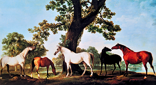 喬治·斯塔布斯(1724-1806) 油畫(huà),現(xiàn)藏于倫敦泰特畫(huà)廊 斯塔布斯,一個(gè)一生與馬為伴的藝術(shù)家。他沒(méi)有受過(guò)系統(tǒng)的繪畫(huà)教育,自學(xué)成才,“靠自己的力量去探索自然,考察自然,描繪自然”,他在自然生活中思考,積累。但是,在當(dāng)時(shí)的時(shí)代大主題下,他卻“逆風(fēng)”成長(zhǎng),堅(jiān)守自我。在大概一個(gè)世紀(jì)后,人們重新對(duì)他的作品進(jìn)行了正確的評(píng)價(jià),才成就了一位英國(guó)最偉大的馬畫(huà)家,成為了世界上首屈一指的“畫(huà)馬大師”。 《大橡樹(shù)下的母馬和馬駒》是其廣為流傳的代表作之一。在蔥郁唯美的大橡樹(shù)前,馬兒們安詳站立,陽(yáng)光般的暖色調(diào)緩緩灑下,股股溫情四溢流露,好似此時(shí)的世界失去了流言喧鬧,一種田園的靜謐安然于此。整幅畫(huà)面采用古典平穩(wěn)的橫構(gòu)圖,五匹馬兒交相輝映,有的駐足凝視,有的幸福地吸允著,有的彎下頭,享受著自然的美味,安寧得好似早已張望到世界的盡頭,享盡得好似早已品透一生百味,配上略顯輕快的節(jié)奏,馬兒們好像就這樣訴說(shuō)著生命的贊歌,展現(xiàn)出一幅古典式詳重寧和之景況。而這些對(duì)于它們的老友斯塔布斯來(lái)講并不難理解,斯塔布斯從小便與馬兒們結(jié)下深厚的友誼,隨后便朝夕相處。他的父親也經(jīng)營(yíng)著以馬具為主要商品的皮革店。所以,斯塔布斯與馬兒有著特殊的感識(shí),自然在展現(xiàn)中也就帶著他人不曾體會(huì)到的理解感悟。他筆下的馬兒,是純真的,是自由的,是“飛翔”的。比起那些在硝煙滾滾中遺世怒吼的戰(zhàn)馬而言,更多的是反映馬兒生命本質(zhì)的真樸,一種生命靈性的美。畫(huà)中的馬兒恬然靜會(huì),人與馬兒心靈的交談悄然隱匿,在安詳靜謐的空間中,兩股溝通交錯(cuò)滑翔,在馬兒們凝厚的目光中,道出了本屬于自然的一切,它們,像我們一樣,都有著心靈深處本初的“美”,綻放著獨(dú)自生命的風(fēng)采。 斯塔布斯用理性的精確,完美地詮釋了馬兒的架構(gòu)與形態(tài)。他用素描性的畫(huà)法,精微刻畫(huà)出馬兒的肖像性內(nèi)容;用色調(diào)的交替,生動(dòng)地繪制出馬兒形體獨(dú)特的韻味。馬兒抬著頭,好似望向天邊陽(yáng)光的凈土,期盼著;依稀的余光撒落,化在背部、腿上,那是一種柔情的眷顧。他在古典主義的線條下,肆意釋放著感性的基調(diào),舒柔唯美的色彩下,將柔和與力量在寫實(shí)的具象與形線的抽象中統(tǒng)一,亦不失趣韻。 看整幅畫(huà)好似在聽(tīng)圣桑的《動(dòng)物狂歡節(jié)》,有第九曲《林中杜鵑》淡淡的歡快,有第十三曲《天鵝》舒緩的悠揚(yáng)。細(xì)細(xì)品味,給人的不僅僅是母馬與馬駒那溫情的愛(ài)意,更像是一種生命的禮贊,讓人們安靜下來(lái),走進(jìn)馬兒生命的世界,感受馬兒“自然”本質(zhì)的靈性,體悟馬兒生命中和諧的美,“他們”,和我們一樣,都是這個(gè)“世界”的“主人”之一。 |