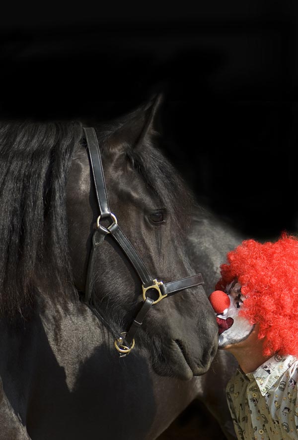 身著彩衣,臉涂白粉,博眾人一樂,強(qiáng)顏歡笑乃是丑角的本份。出生于安哥拉并在葡萄牙和意大利生活多年的馬專業(yè)攝影師Paula da Silva 對這一形象頗有感觸,積聚靈感創(chuàng)作了此系列作品。近3 個(gè)小時(shí)的拍攝是伴隨著帕瓦羅蒂美妙男高音演繹的二幕歌劇《丑角》(Pagliacci)而完成的。對于Paula 來說,音樂為作品創(chuàng)作烘托并渲染了氣氛。歌劇中,馬戲團(tuán)的老板Canio塑造的小丑形象已經(jīng)成為強(qiáng)顏歡笑的范本。他在臉面丟盡時(shí),才被迫取下“面具”,因妒嫉殺死了妻子;劇中小丑宣布:“演出現(xiàn)在結(jié)束!”,這句話,戲里戲外,都一樣有深意——戲里的表演已經(jīng)完結(jié),接下來進(jìn)入現(xiàn)實(shí),我們換好另一副面具,準(zhǔn)備取悅或被取悅。 文藝復(fù)興時(shí)期,英語中“面具”一詞的拉丁語源“person-a”的詞尾慘遭切除,蛻變?yōu)檎螌W(xué)用語“個(gè)人”,而隨后英語以及德語、法語、意大利語等又從阿拉伯語中引入了“mask”這樣一個(gè)幾乎空白的、不富有歷史色彩的詞匯作為替補(bǔ)用詞。面具扮演在歐洲戲劇舞臺上逐漸消失,唯有小丑涂脂抹粉的臉上還殘存著面具的痕跡。直到20 世紀(jì)初,“persona”首先作為一個(gè)心理學(xué)術(shù)語得以重現(xiàn),意為“人格面具”。 在Paula 眼中,我們每個(gè)人都有一張“小丑面具”或者說“人格面具”。生命是一場寂寥的馬戲,我們孤獨(dú)地表演著自己。“我們每個(gè)人都是小丑,無論是馬主、騎手、訓(xùn)馬師還是其他的普通人,在特定的場合,我們都為自己準(zhǔn)備好了形形色色的面具和偽裝,原因很簡單,我們想讓自己看起來更優(yōu)越?!盤aula 這樣對我說。戴著面具做人是當(dāng)代人在社會關(guān)系中真實(shí)的一種體現(xiàn)。人們用面具掩蓋自己的真實(shí)思想,有時(shí)面具讓我們免受傷害,有時(shí)可以供我們釋放欲望。在人際交往時(shí),我們冒充內(nèi)行、冒充文化貴族,以低調(diào)的話語贏得聊天對象的尊敬和崇拜,裝深沉,裝睿智,裝博學(xué),裝出“范兒”來,期望通過外部的標(biāo)簽、身份來標(biāo)示自己的與眾不同。 然而,在Paula 這一系列作品中,馬并不會意識到面具的價(jià)值,它不知道主人的社會身份只是一個(gè)卑微的小丑,同樣,它也看不到人們用來偽裝和隱藏的面具。在馬的世界里,我們也不過是長著兩條胳膊兩條腿的人。無論我們富裕、有文化、健康或是美麗與否,馬都不會理會。我們的面具在它們面前就猶如形同虛設(shè)。如果我們感到畏懼與害怕,不管我們多么故作鎮(zhèn)定,身體里充斥的腎上腺素、走路的形態(tài)、騎坐、持韁的方式,在馬靈敏的嗅覺、敏銳的觀察和感知能力之下,早已無處遁形。在馬的面前,我們真實(shí)地存在著。 文/趙穎 圖/Paula da Silva |