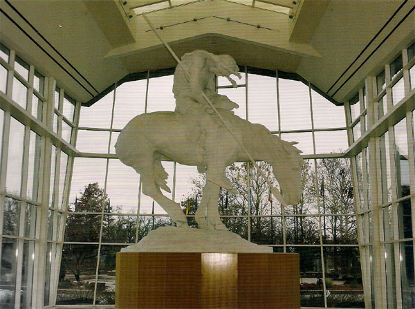 一個(gè)孤獨(dú)的人埋著頭癱坐在他疲倦的馬上,這幅《路的盡頭》的雕塑是象征美國西部的最有名的標(biāo)志之一。很多人將它視作對(duì)高貴勇敢的西部人民的致敬之作。然而在一個(gè)多世紀(jì)以前,對(duì)一些美國原住民來講.這幅雕塑是一個(gè)令人不快的標(biāo)志,因?yàn)樗嵝蚜怂麄冴P(guān)于那場失敗和被征服的戰(zhàn)爭。 顛沛流離的輪回 詹姆斯厄爾弗雷澤兒時(shí)居住在位于柯達(dá)州的印第安人保留區(qū),深深地感受到了印第安人在十九世紀(jì)末被剝奪的悲傷感。出于同情,他于1894年創(chuàng)作了《路的盡頭》的第一個(gè)模型,為的是表達(dá)自由人民今日的生存狀態(tài)。這個(gè)18英尺高的石膏紀(jì)念碑是為1915年在日金山舉辦的巴拿馬_太平洋國際博覽會(huì)而創(chuàng)作的,最后獲得了博覽會(huì)的雕塑金獎(jiǎng)。由此這個(gè)雕塑也立即得到了流行文化的贊賞,《路的盡頭》的形象廣泛出現(xiàn)在明信片、印刷品、小珍奇物件以及微型畫上。 弗雷澤希望他的作品能被鑄造成青銅像,放置在舊金山市西北角的普西迪,俯瞰整個(gè)舊金山海灣,以此作為對(duì)美國原住民永久的紀(jì)念。但第一次世界大戰(zhàn)期間的原料限制政策最終讓這個(gè)計(jì)劃流產(chǎn)。諷刺的是,這個(gè)作品在博覽會(huì)結(jié)束的時(shí)候被弄成了碎片,且被丟棄了。 1920年,加利福利亞州圖萊里縣的居民將石膏碎片搜集起來,重塑起了雕像,并將它放置在了維塞利亞外的穆尼森林公園。在后來48年的歲月里,隨著季節(jié)的變遷,這個(gè)雕塑歷經(jīng)風(fēng)吹雨打日曬而漸漸壞掉了。 1968年,國家牛仔紀(jì)念館從圖萊里縣社會(huì)歷史紀(jì)念館得到了這個(gè)石膏雕塑的原作品,并將其作為中心作品放在了博物館弗雷澤紀(jì)念區(qū)。后來隨著不斷的修復(fù)最終將模型完成。國家牛仔紀(jì)念館還在意大利為它鑄造了一個(gè)一樣大小的青銅雕像,并于1971年在維塞利亞揭幕。在重塑雕像的過程中,整個(gè)的碎片回收項(xiàng)目是由麥克吉狄恩夫婦,羅娜佩恩夫人,柯克派催克夫婦及其基金支持負(fù)責(zé)的。感謝科爾麥克吉公司、羅伯特和格蕾絲科爾基金的慷慨捐助,《路的盡頭》被移送到了現(xiàn)在的館址且得到了細(xì)心的保管和維護(hù),保證它在未來幾十年依然能夠?yàn)椴┪镳^的贊助方們提供持續(xù)的審美享受。 被遺忘的印第安文化 在1894年當(dāng)弗雷澤完成《路的盡頭》的時(shí)候,美國文化也從這個(gè)海岸擴(kuò)展到了另一個(gè)海岸。大多數(shù)歐洲人和美國人相信拓荒時(shí)代已經(jīng)結(jié)束,但是這個(gè)過程卻是不可避免的。許多人將美國原住民視為歷史的一部分,是一個(gè)在二十世紀(jì)無立足之地的已經(jīng)消失的民族。流行文化將印第安人塑造成野蠻的、蠻橫的或其它類似的形象。弗雷澤的《路的盡頭》反映了這個(gè)神話:19世紀(jì)末印第安人保衛(wèi)戰(zhàn)失敗之后,印第安人就進(jìn)入了被遺忘的冰封的時(shí)代。 到1890年美國原住民認(rèn)識(shí)到他們的足跡基本是在峭壁和巖石,但他們認(rèn)為這樣的情況還將持續(xù)。由于大部分被限制在保留區(qū).他們?cè)馐芰思膊『宛囸I的肆虐,印第安人口急劇下降。印第安人的孩子被迫去上那些由聯(lián)邦政府資助的寄宿學(xué)校,而這些學(xué)校都試圖用美國文化來取代傳統(tǒng)部族文化和價(jià)值觀。盡管拒絕承認(rèn)公民身份,印第安人堅(jiān)持認(rèn)為直到1924年才出現(xiàn)了一個(gè)決定他們未來的聲音。 第二次世界大戰(zhàn)為美國原住民社區(qū)帶來了戲劇性的變化。一部分印第安人作為現(xiàn)代戰(zhàn)士被應(yīng)征入伍,其它一部分印第安人搬到城市為保衛(wèi)生產(chǎn)而工作。戰(zhàn)后民族自豪感迅速增長,許多印第安人到非印第安世界尋找工作或其它機(jī)會(huì)。今天幾乎超過一半以上的美國原住民生活在大城市。美國原住民的人口,由1890年約25萬人口,已經(jīng)發(fā)展到了現(xiàn)在略超200萬的人口數(shù)量。 現(xiàn)代印第安人已經(jīng)能夠?qū)鹘y(tǒng)部落文化價(jià)值觀與當(dāng)代美國社會(huì)提供的機(jī)會(huì)很好的結(jié)合起來。盡管現(xiàn)在依然有些美國原住民遵循著他們祖先留下來的歷史悠久的生活方式,而也有其它一些人開始在社會(huì)的教育、政治、商業(yè)、醫(yī)藥和農(nóng)業(yè)等方面尋找自己的優(yōu)勢。不同于弗雷澤的雕塑,“成為印笫安人’從來沒有被刻進(jìn)石頭里。今天,美國原住民正懷著無比自豪的感覺在未來的道路上前進(jìn)。 編譯/張榮 |