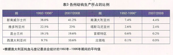 純血馬的引進與賽馬的興起 澳大利亞一詞,原意是“南方大陸”。1790年,第一批來自英國的自由民移居澳大利亞,以悉尼為中心,逐步向內(nèi)陸發(fā)展。至1803年,殖民區(qū)已拓展到今日的塔斯曼尼亞。初期的殖民地僅賴以農(nóng)業(yè)生存,其后便利用天然條件發(fā)展畜牧業(yè)。至1819年,澳大利亞的畜牧業(yè)已有了較大發(fā)展。第一匹純種的英純血馬于1802年來到悉尼,是一匹公馬,名叫Northumberland。1810年,正式的賽馬開始在悉尼舉行。1825年,第一匹純血馬母馬抵達澳大利亞。1825年,悉尼賽馬會(Sydney Turf Club)的建立,標志著澳大利亞第一個真正賽馬組織的形成。在1830年代,澳大利亞的殖民統(tǒng)治者開始進口更多的純血馬,主要目的是賽馬和改良地方品種。澳大利亞的民族構(gòu)成大致是:70%是英國及愛爾蘭后裔,18%為歐洲其他國家后裔,亞裔占6%,土著居民約占2.3%。由此不難看出,這里既有發(fā)展養(yǎng)馬業(yè)所需要的草場,也有擅長養(yǎng)馬、賽馬的英國及愛爾蘭后裔,更有天生就擅長博弈的亞裔,更有講究規(guī)則的歐洲其他國家后裔,故此給澳大利亞的養(yǎng)馬、賽馬奠定了自然的基礎(chǔ)。 澳大利亞純血馬評分排名 根據(jù)2008年國際賽馬聯(lián)盟(IFHA)的評分統(tǒng)計119分及以上的50匹頂級純血馬中,依據(jù)產(chǎn)地劃分,各國的占有量可參見表1。 從表1可以看出,澳大利亞排名第四。世界賽馬距離的劃分如下:S代表短距離,即1000-1300米[美國/加拿大標準為1000-1599米];M代表1英里距離,即1301-1899米[美國/加拿大標準為1600-1899米];l代表中等距離,即1900—2100米;L代表長距離,即2101-2700米;E代表超常距離,即2700米以上。 表1所列的澳大利亞5匹馬均為短途賽(Sprinter,簡稱S)級別的,即1300米以下的。世界賽馬流行有這樣一種說法,即“澳大利亞出短途賽馬之王.歐洲出長途賽馬之王”。雖然大趨勢如此,但澳大利亞也不乏跑長途賽優(yōu)秀的賽馬資源。 賽馬場數(shù)世界第一 賽馬場是測驗馬匹能力的場所,也是賽馬必備的硬件條件之一。澳大利亞擁有的賽馬場數(shù)為世界第一,共有395個賽馬場,這等于每5萬澳大利亞人就有一個賽馬場。 擁有純血馬數(shù)量世界第二 澳大利亞擁有的純血馬數(shù)量世界第二,僅次于美國。根據(jù)2007年的統(tǒng)計數(shù)據(jù),美國有3050匹純血馬種公馬,55271匹繁殖母馬,當年產(chǎn)幼駒34350匹,而澳大利亞相應(yīng)為:種公馬827匹,繁殖母馬29706匹,當年產(chǎn)幼駒18255匹。據(jù)統(tǒng)計,世界上大約80%的純血馬集中繁育在10個國家,分別為美國、澳大利亞、愛爾蘭、日本、阿根廷、英國、新西蘭、法國、巴西和南非。 獵人谷——世界純血馬三大繁育中心之一 獵人谷(Hunter Valley)位于新南威爾士州,它是澳大利亞著名的葡萄酒產(chǎn)地。傳說第一個在此間墾荒種植葡萄和釀酒的人名叫亨特(意為“獵人”),由此而得名。獵人谷的條件得天獨厚,這里光照充足,氣候適宜,土壤中礦物質(zhì)豐富,出產(chǎn)世界上最好的釀酒葡萄,同時這里也集中了世界最優(yōu)秀的種馬場數(shù)十家,比如著名的馬場有庫摩爾(Coolmore)、箭野(Arrowfield)、達雷(Darley)、威登(Widden)等。在這里可以提供優(yōu)良種公馬的配種服務(wù),每年除了本國的種公馬外,還有從北半球空運過來的優(yōu)秀種公馬來這里配種,這種穿梭于南北半球配種的種公馬叫“穿梭種公馬”(ShuttleStallion)。據(jù)統(tǒng)計,2006-2007年,來澳參與配種的“穿梭種公馬”有64匹,占所有種公馬的7.3%,給5526匹母馬配種,占配種母馬數(shù)的20.6%。世界著名的種公馬“丹山”(Danehill)曾屬于庫摩爾種馬場(Coolmore stud),也曾作為“穿梭種公馬”在澳大利亞留下很多優(yōu)秀的子嗣。 投注總額世界第四 投注額是評定商業(yè)賽馬的指標之一,也是賽馬繁榮與否的基礎(chǔ)。賽馬投注額,日本居首位,約250億歐元,其次是美國和英國,兩者均為140億歐元,再其次為澳大利亞,投注額87億歐元,法國(72億歐元)和香港(66億歐元)僅隨其后。 純血馬在澳大利亞的分布 全澳由六個州(昆士蘭州、新南威爾士州、維多利亞州、南澳大利亞州、西澳大利亞州、塔斯馬尼亞州)及兩個領(lǐng)地(北領(lǐng)地和首都特區(qū))組成。其中純血馬幼駒的生產(chǎn)數(shù)量分布如下表3。 文/王振山 |