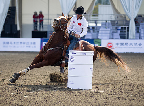 11 月,上海。 深秋的風,藍天白云,在上海世博園區(qū)中國館那個巨大的紅色建筑前,幾匹馬兒正在沙地上悠閑地散步,打滾,毫無一場比賽即將登場的緊張與刺激。區(qū)別于馬術(shù)障礙賽、馬球、速度賽馬等其他盛行于歐洲的馬類賽事,馬術(shù)繞桶賽散發(fā)著純正的美國西部野性與自由的風情,而就在此地,IBHF繞桶世界杯于 11月14日正式鳴鑼。 一大波牛仔靠近上海 作為中國馬類賽事在全世界成績最好的項目,同時也是獨具觀賞性的賽事,IBHF繞桶馬術(shù)世界杯已經(jīng)是第二次在中國舉辦,此次比賽從去年的銀川移師上海世博園內(nèi)。來自包括中國在內(nèi)的24個國家的代表,48位騎手,以及由中國西部馬術(shù)促進會各成員單位提供的50匹國內(nèi)最優(yōu)秀的夸特馬,共同參加這一場大聚會,完全沒有大賽將臨的緊張,每個人臉上都帶著參加聚會的興奮和喜悅,這就是這場上??倹Q賽的基調(diào)。 本次賽事由中國馬術(shù)協(xié)會、IBFH國際繞桶聯(lián)盟、上海市體育局聯(lián)合主辦,由上海馬術(shù)運動管理中心、北京中視文公文化傳媒有限公司、上海世博文化發(fā)展有限公司等多家單位共同承辦。現(xiàn)場共動用了270名工作人員和志愿者,全部工作人員歷時3個多月的前期準備,只為讓這場世界級馬術(shù)盛會更加熱烈繁華。11月14日上午開幕式當天,在上海世博園中國館前,代表 24 個國家的旗手騎著戰(zhàn)馬在前,各個國家的選手盛裝進入場地。 此刻,正在場外待命的駿馬也興奮難耐。 蟬聯(lián)冠軍的猜想 這次參加世界杯的騎手都拿下了各自國家的最好成績,上屆冠軍巴西姑娘 Bruna Cortelini 此次又來到了中國,早在2012年她就作為巴西選手參加了內(nèi)蒙古“鄂爾多斯國際馬文化節(jié)”上的國際繞桶對抗賽,2013年10月,她和從小到大的朋友馬岱爾斯一起搭檔,贏了委內(nèi)瑞拉獲得冠軍,這次已經(jīng)是第三次來到中國了,她在賽前接受了《馬術(shù)》雜志的訪問。 這個對中國已經(jīng)不陌生的姑娘隨時隨地都會說上兩句中文,“我愛中國”和“你好美女”出現(xiàn)的頻率最高,她說:“我來的這三個城市各有各的特色,上海很時尚,我喜歡這里。”被問及是否有蟬聯(lián)冠軍的愿望,她大笑:“這里參賽的每個人都想拿冠軍,他們都是各個國家精選出來的騎手,每個人都很厲害,我只能盡力。這里像個大型的Party,每個人都為比賽興奮,我也一樣。”巴西國內(nèi)的騎手眾多,每年都會參加各種各樣的比賽,巴西的馬術(shù)協(xié)會會根據(jù)騎手參加比賽的數(shù)量和成績進行排行,不需要再打資格賽,因為這全年的賽事成績已經(jīng)是篩選的條件了。 “我一年參加了大概有幾十場比賽吧,我也記不清到底有多少場,反正最終我和另一個選手被選上?!?Bruna在一個馬場工作,她每天的工作就是照料馬匹和練習騎術(shù),然后參賽,“和大多數(shù)的騎手一樣?!币驗槊利惽倚v如花,Bruna被很多人喜愛,當然她的騎術(shù)也是很厲害的。“我大概3歲的時候開始接觸馬,現(xiàn)在大概騎了20年了,”做翻譯的女孩露出了不可思議的表情,“能到各地比賽,甚至來到世界杯賽場上,是很榮耀也很有趣的事,是不是冠軍真的不重要?!?/div> 賽場上的實力與運氣 在第一天的比賽中,中國隊與捷克、墨西哥隊分到了一組,24支隊伍進行進8強的淘汰賽,面對實力強大的墨西哥選手,我們的騎手格希格達來和希吉爾達來并沒有太大的畏懼,一樣催馬上陣,時間成績不俗,但一個撞桶的失誤讓所有的國人嘆了一聲,捷克隊和墨西哥隊的最終總時間排在中國隊之前,除非出現(xiàn)奇跡,否則中國隊出線幾率不大。 賽場上就是瞬息萬變,當所有人都認為出線希望不大的時候,卻出現(xiàn)了轉(zhuǎn)機,第二天的比賽中,智利隊和墨西哥隊因為要爭奪出線權(quán)顯然壓力倍增,選手接二連三地出現(xiàn)失誤,在三個隊均獲得一勝一負的前提下,運氣降臨到了中國隊的上空,以總時間第一的微弱優(yōu)勢晉級8強,這真是意外之喜。 同樣出線的隊伍還有新加坡、加拿大、阿根廷、智利、美國、委內(nèi)瑞拉,當然,衛(wèi)冕冠軍巴西憑借兩位出色姑娘的精彩發(fā)揮也順利晉級。11月15日下午,8強的對陣圖產(chǎn)生,下一個對手是實力同樣強大的阿根廷。足球強大的阿根廷,有世界上最大的馬球馬繁殖和訓(xùn)練背景,群眾騎術(shù)普遍強大,中國隊騎手能與之對陣,將是絕好的學(xué)習機會。事實證明,他們的繞桶技術(shù)還是略勝一籌,在進軍四強的道路上,搶在了中國隊員的前面。同樣晉級四強的四個隊中,加拿大屬于北美,與巴西、智利和阿根廷這三個南美隊伍列陣相對,讓人對這場“南北戰(zhàn)爭”的最終結(jié)局猜了又猜。 運氣與實力是相伴相攜的好姐妹,在絕對的實力面前,運氣似乎沒有那么硬氣。當加拿大的最后一位騎手Christopher Blane站在旗門外時,巴西隊的好成績需要她必須保證時間要比16秒20快,才能贏得冠軍,所有人都在等待,上海的上空陰云密布,頗具電影中大戰(zhàn)將臨的效果。Christopher利落地穿過旗門時,全場沸騰了,所有在計算時間的觀眾都能看出,她的16秒12的成績,以0.09秒的微弱差距,將冠軍獎杯攬到了懷里。另一個姑娘 Krista一改上午比賽沒有達到預(yù)想成績時的沮喪和抱怨,開心地與上來慶賀的Bruna相擁。她們不是對手,是這場游戲的伙伴。 牛仔的風情 牛仔的張揚和