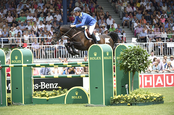 城市之魂 亞琛位于北萊茵- 威斯特法倫州,是德國西部的一個重要城市。中世紀的尖頂城門,復(fù)古的樓式宅居,還有年代久遠的噴泉雕塑,都充分體現(xiàn)了古城的特點。亞琛還是西歐各國重要的交通樞紐,距離德國、荷蘭、比利時三國交界處僅5 公里。 走在亞琛安靜整潔的街道上,沐浴著明媚的陽光,空氣中充斥著一種淡淡的清香,仿佛能讓你忘卻一切煩擾。作為一座歷史名城,亞琛散發(fā)著一種高貴古樸的文化韻味,而馬術(shù)永遠是亞琛文化的主基調(diào)。在我們?nèi)胱〉募彝ヂ灭^,餐桌的中央除了擺放著燭臺和鮮花等裝飾品外,還有各式各樣的迷你馬匹雕塑,它們形態(tài)各異,活靈活現(xiàn),分布在餐廳的每一個角落,房東先生會定時清潔它們表面的灰塵,保證這些馬匹雕塑外表光鮮亮麗也成為了他經(jīng)營餐廳的重要一部分。你會不會覺得很詫異?不過是一個飾品擺件而已,但這就是馬和馬術(shù)對于亞琛市民的重要意義。 匯聚了全球頂級騎手的亞琛世界馬術(shù)節(jié),吸引了36 萬觀眾,這是一個龐大的馬術(shù)人群基數(shù),占據(jù)了城市總?cè)丝诘奈宸种?。無論是初賽還是決賽,碩大的賽場觀眾看臺上,場場座無虛席,觀眾們熟悉每一位騎手的背景及成績,總是情不自禁且極有默契地流露出一聲聲表示贊賞的感嘆。他們將自己完全融入賽場,騎手的每一跳都能牽動他們的情緒。他們和周圍的朋友談?wù)擈T手完美的技術(shù)處理或者某一次失誤的細節(jié),就連對觀賽者的馬術(shù)知識有極高要求的盛裝舞步比賽,他們也能及時地給予贊賞的掌聲,而若不是了解,是萬萬不可能做到這一點的。這種充滿現(xiàn)場感的互動,讓每場賽事的馬術(shù)氛圍都愈發(fā)濃厚,代表德國隊的騎手們無疑受到了鼓舞,躍動間傳達出了作為主場運動員的一種必勝的氣勢。為了表達對騎手的敬佩,現(xiàn)場掌聲迭起,騎手也會于完成比賽后,熱情地向觀眾看臺揮手示意,洋溢著笑容的臉上分明可以察覺到騎手內(nèi)心無法掩飾的激動的情緒。 馬術(shù)對于亞琛的人們來說就像一道美味的開胃菜,開啟每天的快樂生活。即使紫外線足夠有殺傷力,你還是可以看到場館外絡(luò)繹不絕的人流涌向賽場,所有的觀眾及工作人員都按照組委會為自己設(shè)定的區(qū)域安排活動,共同維護著現(xiàn)場的秩序,完全沒有給亞琛的賽場帶來一絲一毫的混亂。置身于人群中,你能夠感受到他們對這項運動的無盡向往。亞琛的大舞臺為熱愛馬術(shù)的人們開啟了一扇交流的大門,每場比賽結(jié)束后,即使深夜,也總是能看到各個VIP 帳篷里歡聲笑語、歌舞升平。著名的鋼琴演奏家Bob Chisolm 帶來的試聽享受是極度美妙的,那些從他的指縫間流淌出的動聽的音符,讓來亞琛做客的朋友不僅能看到馬的美麗,也能尋求到欣賞藝術(shù)的快樂。大家在亞琛暢快地體驗這個馬術(shù)節(jié)日的大狂歡,在觥籌交錯間討論更多有趣的話題,不僅僅有馬術(shù),更有生活。 對亞琛馬術(shù)節(jié)的支持不只局限于熱情的德國馬術(shù)賽事迷,連德國交通都做好了服務(wù)賽事的準備。路邊的公交站臺,可以輕易地看到亞琛世界馬術(shù)節(jié)的logo,你會輕松地就查閱到去往賽場的交通信息,也會深刻地感受到這是一個全民熱愛并支持的馬術(shù)活動。我們幸運地搭乘了酒店至賽場的接駁車,黃色的shuttle 指示牌是方便出行的標志,熱情的司機向我們介紹預(yù)約的方法,幫助我們節(jié)省時間。作為僅有的被邀請的中國記者,我們很享受如此細致周到的禮遇,亞琛之行注定充滿魅力! 勞力士大獎賽:實力為王 46秒59 ! 0罰分!勞力士大獎賽的賽場上,滿滿的是來自四面八方的歡呼和喝彩,那一刻是德國騎手Christian Ahlmann點燃了觀眾的熱情,他漂亮地完成了勞力士大獎賽的加時賽,摘得本屆亞琛世界馬術(shù)節(jié)最有含金量的賽事桂冠。50多年以來,勞力士一直致力于推廣馬術(shù)運動的發(fā)展,每屆勞力士大獎賽上的冠軍們可以說是亞琛世界馬術(shù)節(jié)的最大看點。 “這真是一場難以置信的勝利!”Christian Ahlmann在賽后的采訪中感慨道。今年39歲的Christian Ahlmann 與12歲的愛馬codex one創(chuàng)造了整場加時賽唯一的零罰分,他也完成了等待了20年之久的夢想,第一次在亞琛的舞臺獲得了寶貴的金牌,“我的下一個目標是站在云杉大師賽的領(lǐng)獎臺上,通過賽事讓更多的人認識我、關(guān)注我,并能贏得至高的榮譽和豐厚的獎金。” 亞琛勞力士大獎賽的第一輪比賽,可以說是一次真正意義上的“爭分奪秒”的比拼。在來自德國、瑞士、法國、比利時、英國、美國等13個國家的40名騎手中,有15位騎手完成了第一輪比賽零罰分,再來關(guān)注他們的成績83.55、82.43、81.39、81.31、80.95……如此接近的比分,告訴我們這樣一個事實:要想在亞琛勞力士大獎賽上取得成功,就意味著分秒必爭。 曾排位世界第一的騎手Ben Maher 雖然在第一輪比賽用時僅81.48秒,卻遺憾地打落一桿,被罰4 分;德國騎手Marco Kutscher、荷蘭騎手Gerco Schroder 和美國騎手Lucy Davis 也很遺憾有同樣的失誤。路線設(shè)計師Frank Rothenberger 的工作很出色,他在賽前依據(jù)兩輪賽事的障礙路線及難度給予了一個預(yù)估:進入爭時賽的騎手應(yīng)該有4-6 位。事實上,F(xiàn)rank Rothenberger 的估計很準確,最終進入爭時賽的騎手有5 位,除了贏得冠軍的Christian