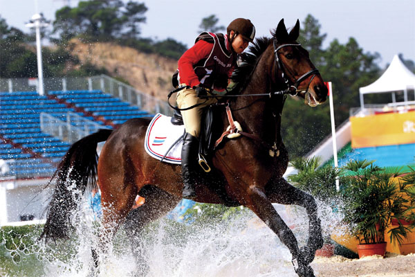 和奧運(yùn)會(huì)一樣,亞運(yùn)會(huì)在馬術(shù)項(xiàng)目的設(shè)置上也分為三個(gè)大項(xiàng):盛裝舞步,三日賽和場地障礙。三個(gè)大項(xiàng)又分團(tuán)體和個(gè)人,男女選手同場競技。廣州亞運(yùn)會(huì)馬術(shù)比賽的第一批參賽馬匹是11月3日抵達(dá)從化的。從13日開始驗(yàn)馬算起到24日全部比賽結(jié)束,共計(jì)12天。在12天的比賽中,中國代表團(tuán)在馬術(shù)項(xiàng)目上取得了歷史性的突破,中國馬術(shù)隊(duì)取得了前所未有的好成績。在盛裝舞步團(tuán)體項(xiàng)目上,中國隊(duì)繼2002年韓國釜山亞運(yùn)會(huì)的銅牌之后更進(jìn)一步,取得了銀牌的歷史最好成績。而在三日賽團(tuán)體項(xiàng)目中,中國隊(duì)也首次站在了領(lǐng)獎(jiǎng)臺(tái)上,贏得銅牌,整個(gè)中國馬術(shù)隊(duì)共有四人在個(gè)人賽上進(jìn)入了前十名。 盛裝舞步:八年之后的涅 本次廣州亞運(yùn)會(huì)上,中國馬術(shù)隊(duì)的四名騎手顧兵、黃焯欽、蔡喬和劉娜一起贏得了盛裝舞步團(tuán)體項(xiàng)目的銀牌,這是繼獲得2002年韓國釜山亞運(yùn)會(huì)該項(xiàng)目銅牌之后的又一突破。 2002韓國釜山亞運(yùn)會(huì)上,中國隊(duì)拿到銅牌的三名騎手是黃焯欽、張立軍和顧兵。本屆亞運(yùn)會(huì)張立軍沒有參賽,增加了蔡喬和奧運(yùn)騎手劉娜。 在釜山亞運(yùn)會(huì)上,韓國隊(duì)取得了盛裝舞步項(xiàng)目的團(tuán)體冠軍,2006年的多哈亞運(yùn)會(huì)上又衛(wèi)冕了該項(xiàng)目,實(shí)力明顯在中國隊(duì)之上。所以中國隊(duì)想要在成績上有所突破,就必須擊敗馬來西亞隊(duì)和日本隊(duì),他們分別是2006年多哈亞運(yùn)會(huì)上的第二和第三名。盛裝舞步團(tuán)體比賽的規(guī)則是全隊(duì)四位選手參加兩輪比賽,取每輪三名選手總罰分的最好成績相加,來決定最終名次。 在賽后接受采訪時(shí),中國隊(duì)的騎手劉娜說:“現(xiàn)場的觀眾很熱情,看見我們有不錯(cuò)的發(fā)揮就興奮地鼓掌,讓我的馬受到了驚嚇,好在我的馬十分依賴我,沒出什么大錯(cuò)?!绷硪幻T手顧兵也表示,“我的馬最怕從后面發(fā)出較大聲音,但是我一做出好動(dòng)作,觀眾就鼓掌,馬就會(huì)亂了方寸,我不怨這些觀眾,因?yàn)椴恢卟还?。?dāng)然,這也讓我個(gè)人賽成績不如團(tuán)體時(shí)發(fā)揮的好。我的這匹馬是花兩百萬人民幣買的,和沙特、阿聯(lián)酋那些幾千萬的馬匹相比確有差距。我想,到下屆亞運(yùn)會(huì)時(shí),我們也會(huì)有私人老板給我提供更為優(yōu)秀的參賽馬的?!?/div> 來自德國的裁判主席也評(píng)價(jià)道:“中國已經(jīng)有了一批實(shí)力不俗的亞洲級(jí)選手,隨著經(jīng)濟(jì)的增長,我想我們會(huì)擁有更優(yōu)秀的馬匹。但如果想持續(xù)發(fā)展,我覺得還是應(yīng)該多抓基礎(chǔ),特別是青少年的基礎(chǔ)訓(xùn)練和馬術(shù)人才的選拔。” 獲得團(tuán)體第四名的中國臺(tái)北選手陳逸聰賽后表示,“我對(duì)自己的成績很滿意了,這次參賽我沒有運(yùn)自己的馬過來,只是在廣東租了一匹馬參賽,前后磨合僅僅三個(gè)星期,我是在享受比賽。我聽說中國隊(duì)出現(xiàn)了馬受傷而不得不臨時(shí)換馬的情況,其實(shí)這樣做還是有不少風(fēng)險(xiǎn)的?!?/div> 作為本屆亞運(yùn)會(huì)盛裝舞步團(tuán)體冠軍也是上屆亞運(yùn)會(huì)團(tuán)體冠軍韓國隊(duì)的主力金東善說:“我們的出場順序通常是經(jīng)驗(yàn)最豐富的選手最后出場。本屆亞運(yùn)會(huì),韓國獲得了盛裝舞步團(tuán)體和個(gè)人冠軍,我十分開心,我想我一輩子都不會(huì)離開馬術(shù)的。上屆亞運(yùn)會(huì)上金亨七不幸遇難,我的隊(duì)友金均燮是他侄子,我們一起用好成績來緬懷了他?!?/div> 盛裝舞步團(tuán)體銅牌馬來西亞隊(duì)的主力庫贊德里亞說:“我的馬參賽時(shí)還是不太適應(yīng)我們選擇的音樂,動(dòng)作都跑到音樂前面去了。有兩次還跑快了半圈,不得不往回倒,這很不專業(yè)。我發(fā)現(xiàn)不同的場地條件,馬匹的速度會(huì)有差異,下次參賽,我覺得應(yīng)該首先考慮馬匹喜歡哪首音樂?!?/div> 榮獲盛裝舞步團(tuán)體和個(gè)人兩枚金牌的韓國騎手黃煐植說:“細(xì)想自己的冠軍,首先要感謝我的德國教練,而成功的關(guān)鍵我認(rèn)為是在德國進(jìn)行的大強(qiáng)度訓(xùn)練和比賽。去歐洲‘取經(jīng)’對(duì)亞洲選手來說是一個(gè)捷徑,看看各隊(duì)教練的面孔大多來自歐洲你就應(yīng)該明白這個(gè)道理。個(gè)人賽冠軍對(duì)我而言最現(xiàn)實(shí)的收獲就是可以安心在德國訓(xùn)練,因?yàn)榻衲暾玫搅宋曳鄣哪挲g,贏得金牌我就可以不用回國服兵役了。亞運(yùn)會(huì)期間,印象最深的就是德國教練對(duì)我的笑容,他給予了我極大的鼓勵(lì),讓我感到十分溫暖?!?/div> 中國香港運(yùn)動(dòng)員蕭穎瑩在賽后說:“我愛祖國,所以這次我選的歌曲叫《中國少女》希望能記住我是中國姑娘。我生長在香港,香港人工作十分刻苦,喜歡把事辦得妥妥當(dāng)當(dāng),這種影響貫穿在我訓(xùn)練和比賽的每個(gè)環(huán)節(jié)中。” 三日賽:馬術(shù)屆的又一次輝煌 本屆亞運(yùn)會(huì)上,參加三日賽的中國選手有李靜敏、楊華、梁銳基和劉同晏。大家知道,三日賽即第一天進(jìn)