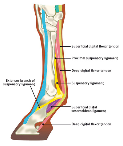 提起馬匹常見的肢蹄病,熟悉馬匹、熱愛馬術(shù)運(yùn)動(dòng)的朋友肯定會(huì)提到“漲筋”。我們平時(shí)所稱“漲筋”具體是什么呢? 看上圖,在馬匹的第三掌骨(俗稱管骨)后面有三根堅(jiān)韌的軟組織,黃色的是懸韌帶、紅色的是指深屈肌腱、在最外面黃綠色的是指淺屈肌腱。簡(jiǎn)單的說,“漲筋”是這三者中的任意一條,以及肌腱的腱鞘受損出現(xiàn)炎性腫脹。 上圖中,左一是正常的馬腿,左二是最常見的一種漲筋,左三的病變存在于下三分之一,左四的病變?cè)谥虚g,最后一個(gè)病變靠上。 上圖左一是正常的肌腱,中間為受損腫脹的肌腱,右一為已經(jīng)斷裂的肌腱。 肌腱韌帶的損傷往往是由于突然承力過大導(dǎo)致其過度拉伸造成的。最新的研究顯示,韌帶肌腱在運(yùn)動(dòng)中也會(huì)出現(xiàn)溫度過高的現(xiàn)象。當(dāng)馬匹在運(yùn)動(dòng)中體溫達(dá)到40-41℃的時(shí)候,肌腱的核心溫度可能已經(jīng)達(dá)到44-45℃了。所以在運(yùn)動(dòng)后,要及時(shí)打開綁腿,通過慢走和水沖讓肌腱韌帶的熱度慢慢降低。如果不及時(shí)打開綁腿,熱量會(huì)持續(xù)積聚在肌腱,核心溫度可達(dá)46-47℃,使得膠原纖維組織受損。如果這種情況老發(fā)生,肌腱會(huì)越來越脆弱,最后導(dǎo)致“漲筋”的出現(xiàn)。 上圖為可以加冰袋 / 冰水的功能性護(hù)腿 當(dāng)你發(fā)現(xiàn)你的馬兒筋腱出現(xiàn)腫脹、發(fā)熱的時(shí)候,無論這個(gè)時(shí)候它是否已經(jīng)出現(xiàn)跛行,都應(yīng)該立刻采取措施。在這個(gè)炎癥急性期,通過受傷部位的血流會(huì)比之前大幅提高,隨著血流而來的是眾多會(huì)損傷膠原纖維的炎性因子。隨后這些出血會(huì)形成微小的血凝塊,這又阻礙了供血,使愈合變慢。通過用冰袋冰敷、夜里打綁腿和物理性降溫加壓能對(duì)控制炎性腫脹起到一定幫助。 此外,請(qǐng)第一時(shí)間請(qǐng)你的獸醫(yī)過來,他會(huì)通過動(dòng)態(tài)學(xué)檢查和其他手段,比如B超探查來檢查受傷的部位及嚴(yán)重程度,并第一時(shí)間制定治療計(jì)劃。 如果不通過任何介入式的治療手段,一匹馬筋腱的自我修復(fù)需要6-12個(gè)月。在這期間,不應(yīng)該讓馬做高強(qiáng)度運(yùn)動(dòng),也就是讓它們“休息”半年到一年。在急性期過后,腫脹開始慢慢消退,在一兩個(gè)月里,有些馬匹就“看似好了”。然而,肌腱的修復(fù)是不會(huì)那么迅速的,往往很多騎手迫不及待地開始讓馬匹重新投入訓(xùn)練,這會(huì)造成馬匹筋腱的損傷再次加重,甚至導(dǎo)致職業(yè)生涯就此完結(jié)。 小提示:一旦腫脹消退,就應(yīng)該每天牽溜馬匹,這樣做可以防止粘連的產(chǎn)生,加快血液循環(huán),以促進(jìn)痊愈,并能保持馬匹肌肉。 上圖為受傷肌腱的B超顯示,圖右為正常對(duì)比。可見圖左位于最上方的指淺屈肌腱體積變大(腫脹),中間出現(xiàn)深色區(qū)域(損傷)。B超檢查在治療筋腱軟組織損傷中尤為重要,在整個(gè)治療過程中,B超可以探查出病變部位的受損情況和恢復(fù)狀況,獸醫(yī)會(huì)根據(jù)B超探查的結(jié)果,制定下一步的治療和恢復(fù)計(jì)劃。 治療“漲筋”的方法有很多,可以通過B超引導(dǎo)直接注射藥物到受損部位、使用PRP等生物因子療法、用強(qiáng)激光和沖擊波加快損傷愈合、用中藥內(nèi)服加外敷以及用高大上的干細(xì)胞療法等,獸醫(yī)會(huì)根據(jù)病情,與主人的經(jīng)濟(jì)條件相結(jié)合選擇治療方法。 另外兩個(gè)非常重要的修復(fù)方法——添加劑的補(bǔ)充和治療性蹄鐵的應(yīng)用卻經(jīng)常被忽視。通過筋腱添加劑,可以補(bǔ)充一些重要的特定營養(yǎng)成分,如膠原蛋白、硫酸軟骨素、黏多糖、硫酸葡萄糖胺、維生素A、維生素E、鋅、銅和賴氨酸等。這些有效成分不僅可以強(qiáng)健肌腱韌帶,減少受損幾率,還可以促進(jìn)修復(fù),加快愈合。在肌腱損傷后的四到八周給予特定的肌腱韌帶添加劑,有助于膠原蛋白修復(fù)。 小提示:提到添加劑,不僅要考慮到關(guān)節(jié)添加劑,韌帶肌腱也不能忽略。 治療性蹄鐵的應(yīng)用在筋腱損傷修復(fù)中有非常重要的作用。你知道嗎,懸韌帶、指深屈肌腱和指淺屈肌腱損傷所應(yīng)用的蹄鐵,各不相同!因?yàn)樯锪W(xué)的不一樣,獸醫(yī)和釘蹄師會(huì)根據(jù)具體的損傷部位和情況,為馬兒打造相應(yīng)蹄鐵。而它們共同的目的之一,就是減輕受損肌腱韌帶的負(fù)擔(dān)。 文/Henk Offereins DVM 翻譯/彭煜師 執(zhí)業(yè)馬獸醫(yī) 圖/樂馳馬醫(yī)療 |