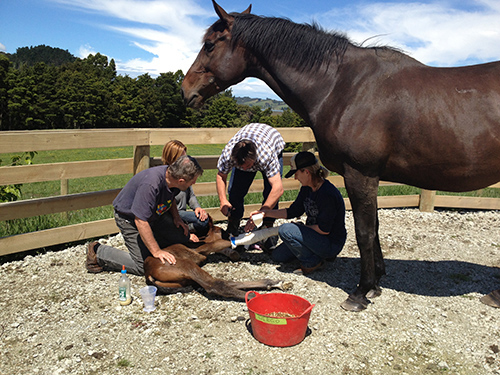 有一次馬匹的放風(fēng)活動(dòng)一直令我印象深刻,那是母馬帶著剛出生 2 周的小馬駒一起外出享受燦爛的陽(yáng)光,我牽著它們不過(guò)步行了短短 2 分鐘,隔壁場(chǎng)地里活動(dòng)的成年馬匹們就敏感地將目光投向我們。由于兩個(gè)場(chǎng)地中間沒(méi)有被徹底隔離,成年馬匹們迅速跑過(guò) 100 多米來(lái)到了我們面前,顯然它們的目標(biāo)是格斗中處于弱勢(shì)的小馬駒,只見(jiàn)母馬這時(shí)奮力掙脫開(kāi)我手里的牽馬繩,并近乎瘋狂地回應(yīng)它們的惡意攻擊。這次經(jīng)歷告訴我們這樣一個(gè)道理:初生馬駒在馬群中的地位很低,出于保護(hù)它的目的,我們應(yīng)該將它完全與其他成年馬匹隔離。那么借著這個(gè)故事,我想和大家強(qiáng)調(diào)一下護(hù)理初生馬駒的重要性及應(yīng)注意的幾個(gè)方面。 前段時(shí)間,我的鄰居來(lái)向我和丈夫求助,她家剛誕生于這個(gè)世界的馬駒有前腿彎曲(蜷縮)的狀況。馬駒站不起來(lái),不能吃母馬的奶。下面的文章我會(huì)告訴你為何這屬于“緊急狀況”;為何對(duì)馬駒來(lái)說(shuō),能自己盡快站起來(lái),吃到母馬的“初乳”是如此重要的事情。 幾周前,還是這位鄰居,她電話咨詢(xún)我:現(xiàn)在是否能帶著她的母馬和小馬駒與其他成年馬匹們一起遛彎?并告訴我,那匹?。üR駒現(xiàn)在很強(qiáng)壯,能很好地吃奶,與媽媽的母子聯(lián)系也非常緊密。我從中國(guó)讀者那里也接收到同樣的提問(wèn),這是多么巧合的一件事情!如此可見(jiàn),無(wú)論在世界的哪個(gè)地方,涉及到馬匹時(shí),問(wèn)題都是一樣的。 我的中國(guó)讀者沒(méi)有被她牽著的母馬踢中頭真是非常幸運(yùn)。世界上沒(méi)有比母馬和它的馬駒更緊密的聯(lián)系了。母馬會(huì)不顧一切危險(xiǎn)去保護(hù)馬駒,甚至愿意為馬駒而死去。作為一個(gè)“愛(ài)馬之人”,了解馬的行為,并且確保不會(huì)將你自身、母馬和馬駒置于危險(xiǎn)之中是你的職責(zé)。會(huì)被母馬視為“危險(xiǎn)”的情況有很多。把母馬和它出生兩周的馬駒帶到一群母馬之中,恐怕是你能做的最危險(xiǎn)的事情之一。可以 100%的確定,這會(huì)導(dǎo)致災(zāi)難。相對(duì)來(lái)說(shuō),更好的解決方案是:將一匹在馬群中地位低的、安靜的、友好的母馬及其馬駒帶入那匹母馬和剛出生 2 周馬駒所在的放牧場(chǎng)。一定不要將那匹母馬帶離它自己的領(lǐng)地,不要將它放置在不熟悉的、“危險(xiǎn)”的放牧場(chǎng)。幾天之后,大家彼此熟悉,能快樂(lè)、安靜地相處后,再“引薦”另一匹母馬及其馬駒進(jìn)入。每匹母馬和自己的馬駒應(yīng)建立緊密的聯(lián)系,馬駒都應(yīng)該強(qiáng)壯而健康。但要意識(shí)到,風(fēng)險(xiǎn)依然存在,引入馬匹后,就離開(kāi)放牧場(chǎng),讓母馬自己行動(dòng),讓母馬們和它們的馬駒自己交流、熟悉、適應(yīng)。隨著馬駒逐漸成長(zhǎng),變得更強(qiáng)壯,有能力從亂踢的母馬身邊及時(shí)跑開(kāi),母馬變得更加放松,那么“引薦”就變得更容易了。 好的圍欄在 “引薦”的過(guò)程中扮演著不可或缺的角色。同時(shí),應(yīng)該要由一個(gè)熟悉母馬和馬駒、經(jīng)驗(yàn)豐富的人監(jiān)督指導(dǎo)。通常一個(gè)健康、新生的馬駒能充分適應(yīng)環(huán)境并生存下來(lái),但減輕壓力和控制疾病的措施依然必不可少,如無(wú)微不至的接生及生產(chǎn)的準(zhǔn)備、照料等工作以及特別的預(yù)防措施。大部分健康的母馬在產(chǎn)駒時(shí)幾乎不會(huì)遇到困難,然而,體型過(guò)胖或年紀(jì)過(guò)老的母馬則更有可能碰到身體狀況不適合產(chǎn)駒或肌肉張力不足而沒(méi)有能力快速產(chǎn)駒的情況。很顯然,這類(lèi)母馬需要得到更多的關(guān)注。馬駒在出生過(guò)程中如果遇到困難(難產(chǎn)),或者生產(chǎn)期間耗時(shí)過(guò)長(zhǎng),這些都會(huì)直接影響到馬駒的身體狀況和后期發(fā)展。 生產(chǎn)期間檢查馬駒和母馬 母馬產(chǎn)駒時(shí),你應(yīng)該在場(chǎng),馬駒一落地就應(yīng)該確保胎衣沒(méi)有覆蓋住馬駒的鼻子。同時(shí)也要避免過(guò)多的干預(yù)行為——讓母馬來(lái)行動(dòng),并讓其放松。因?yàn)轳R駒身體里超過(guò)三分之一的血液都是在落地后的幾分鐘里從胎盤(pán)傳輸?shù)缴眢w的(若母馬受驚跳起導(dǎo)致臍帶斷開(kāi),血液還沒(méi)完全進(jìn)入馬駒身體,那必然會(huì)影響馬駒的體質(zhì))。讓臍帶保持連接,通常情況下,臍帶會(huì)在馬駒移動(dòng)或母馬站起來(lái)時(shí)自動(dòng)斷開(kāi)。 生產(chǎn)期間的注意事項(xiàng): 1. 檢查母馬是否存在產(chǎn)后撕裂、擦傷或受傷的情況——如果有必要,咨詢(xún)專(zhuān)業(yè)的獸醫(yī)。 2. 檢查臍帶是否已經(jīng)斷開(kāi),馬駒是否有活力。 3. 檢查胎衣。1-2 小時(shí)內(nèi),胎衣應(yīng)該全部出來(lái)。將胎衣展開(kāi),檢查是否完整。如果不確定母馬體內(nèi)是否留有部分胎衣,應(yīng)咨詢(xún)獸醫(yī)。 如果胎衣留在了母馬體內(nèi)超過(guò) 4 小時(shí),應(yīng)咨詢(xún)獸醫(yī)?;蛟S需要用一種后葉催產(chǎn)素激發(fā)體內(nèi)的胎衣脫離子宮。如果在 6-8 小時(shí)內(nèi)胎衣依然停留在體內(nèi),獸醫(yī)必須要趕到現(xiàn)場(chǎng)來(lái)將之