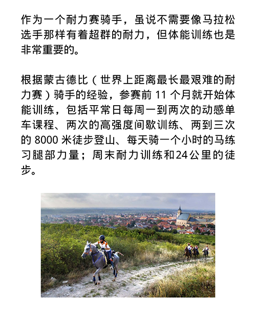 俗話說:“騎乘中,馬最不需要的就是坐在上面的人?!?/div> 耐力賽門檻低,只要有基礎(chǔ)騎馬經(jīng)驗(yàn)就可以參加比賽,但耐力賽本身對騎手體力要求一點(diǎn)也不低。騎手的重心和騎姿會很大程度影響馬匹的平衡,這也就要求賽事過程中,騎手需要在長時(shí)間和多變地形中始終保持良好的騎姿,和馬匹默契地配合。 經(jīng)歷一百多公里的長途比賽,身體難免會勞累酸痛,但相對于比賽帶來的樂趣和滿足感,這些都不重要。每一位耐力賽老手,骨子里都有一定程度的“瘋狂”。筆者在澳洲比賽時(shí),基本都是凌晨兩三點(diǎn)開賽,國內(nèi)大約是早上四五點(diǎn)開賽,在馬來西亞一般是下午四五點(diǎn)開賽,一直騎到半夜兩三點(diǎn)……. 筆者也會經(jīng)常問自己,為什么選這個(gè)項(xiàng)目“折磨”自己??墒敲慨?dāng)騎上馬背,這個(gè)想法就消失了。正是這點(diǎn)“瘋狂”,讓耐力賽騎手們一次又一次地超越自己。 有人說耐力賽屬于極限運(yùn)動,但其實(shí)耐力賽騎手分為兩大類——專業(yè)騎手和業(yè)余愛好者。馬匹亦然。所以速度并不是這項(xiàng)運(yùn)動的全部。 平衡的騎姿 依據(jù)個(gè)人的調(diào)整 體能準(zhǔn)備 心理準(zhǔn)備 作者介紹 潘映彤,中國香港著名耐力賽騎手,自 2012 年以來以青年騎手身份參加第一場 FEI 耐力賽,之后常年活躍于國內(nèi)外國際耐力賽事,曾代表中國香港出戰(zhàn)法國諾曼底世界馬術(shù)大賽。BP EQUINE LTD 營運(yùn)總監(jiān)。擁有 BHS STAGE 4 馬房經(jīng)理、資深職業(yè)騎手、教學(xué)資格和多年教學(xué)經(jīng)驗(yàn)。香港大學(xué)SPACE康樂與運(yùn)動管理系,并曾修讀蘇格蘭愛丁堡大學(xué)馬科營養(yǎng)課程。 對耐力項(xiàng)目感興趣的朋友歡迎收看中國馬術(shù)協(xié)會官網(wǎng)主辦,《馬術(shù)》雜志承辦的《【馭見·世錦賽征途】耐力賽參賽與訓(xùn)練經(jīng)驗(yàn)線上分享會》。 分享嘉賓 賈惠林:國際馬聯(lián)精英騎手 賈惠林,國際馬聯(lián)精英騎手。代表中國參加了2014年和2018年世界馬術(shù)大會和2016年的世界錦標(biāo)賽,并成為中國唯一一位在國際馬聯(lián)原賽制四星級比賽中完賽的騎手,同時(shí)現(xiàn)在也獲得了2022年世界錦標(biāo)賽的參賽入場券。截止至2022年8月31日共完成了14場160公里耐力賽,也是目前中國完成三星級比賽次數(shù)最多的騎手(累計(jì)完成14次)。 王志強(qiáng):兩次參與FEI耐力五大難賽道 王志強(qiáng),2015年進(jìn)入耐力項(xiàng)目,共參加國內(nèi)國際馬術(shù)耐力比賽40多場。2018年參加了世界馬術(shù)運(yùn)動會。兩次參與FEI耐力五大難賽道,法國弗洛哈克3星160公里16名,迪拜王子杯沙漠高溫賽道81名。法國哥斯達(dá)浩斯、楓丹白露,德國八本豪森3星160公里分獲第六和兩個(gè)第十。今年6月25日,獲世界錦標(biāo)賽耐力賽資格。 |