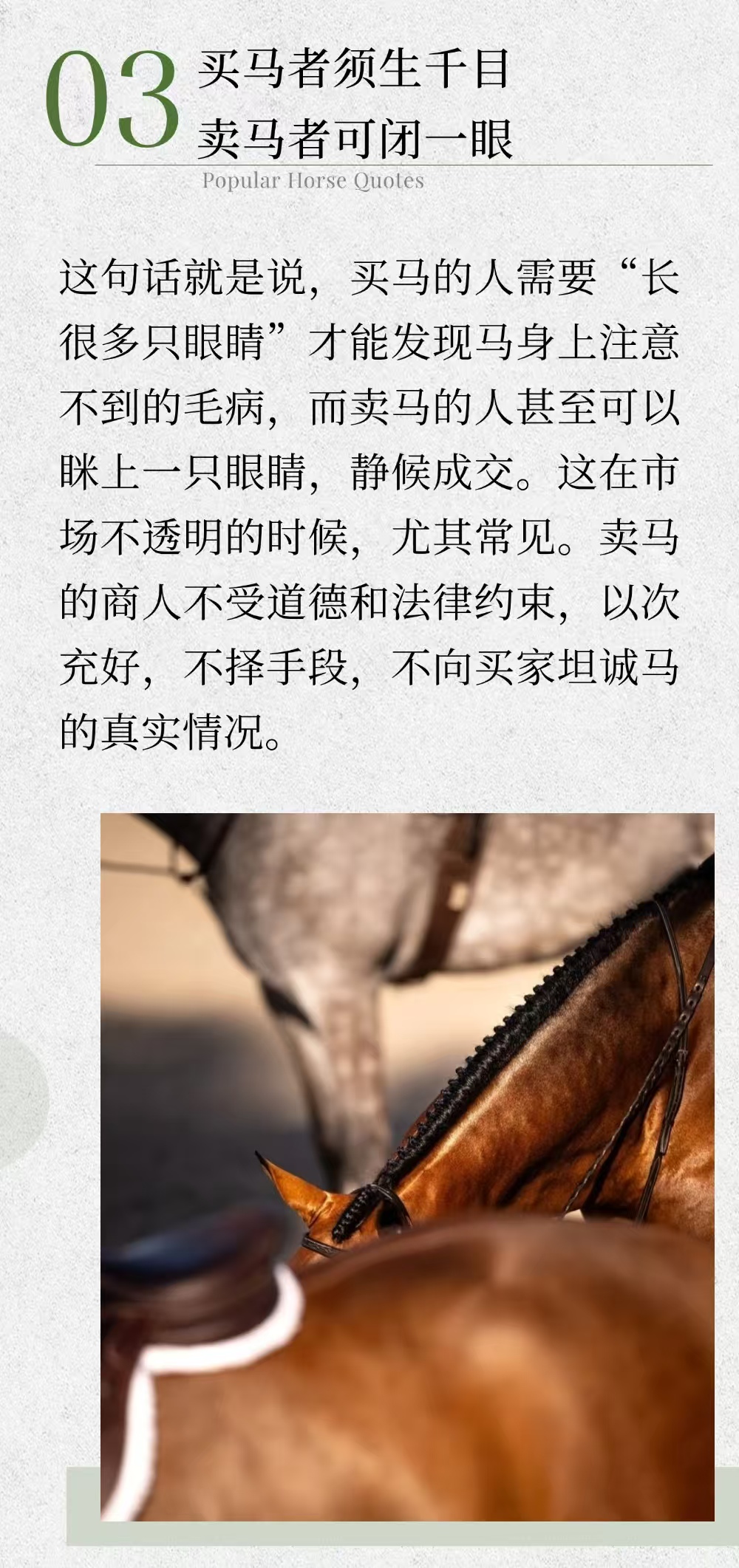 關(guān)于馬的諺語有很多,但以下六句諺語,不僅闡明了與馬相關(guān)的知識(shí),而且飽含哲學(xué),發(fā)人深思。你覺得哪句諺語給你的啟發(fā)最大?