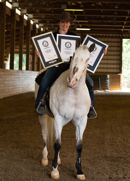 除了他們迷人的外表,阿帕盧薩馬還因其溫順、友好和忠誠(chéng)的個(gè)性而聞名。而在美國(guó)俄勒岡州科瓦利斯市,一匹24歲的阿帕盧薩馬“盲馬Endo”不僅展現(xiàn)了他溫和的天性,還展現(xiàn)了他不屈命運(yùn)的靈魂,他的故事感動(dòng)了全世界。 Endo和他的主人摩根·瓦格納(Morgan Wagner) 2022年10月29日,Endo和他的主人摩根·瓦格納(Morgan Wagner)一起創(chuàng)造了三項(xiàng)吉尼斯世界紀(jì)錄: