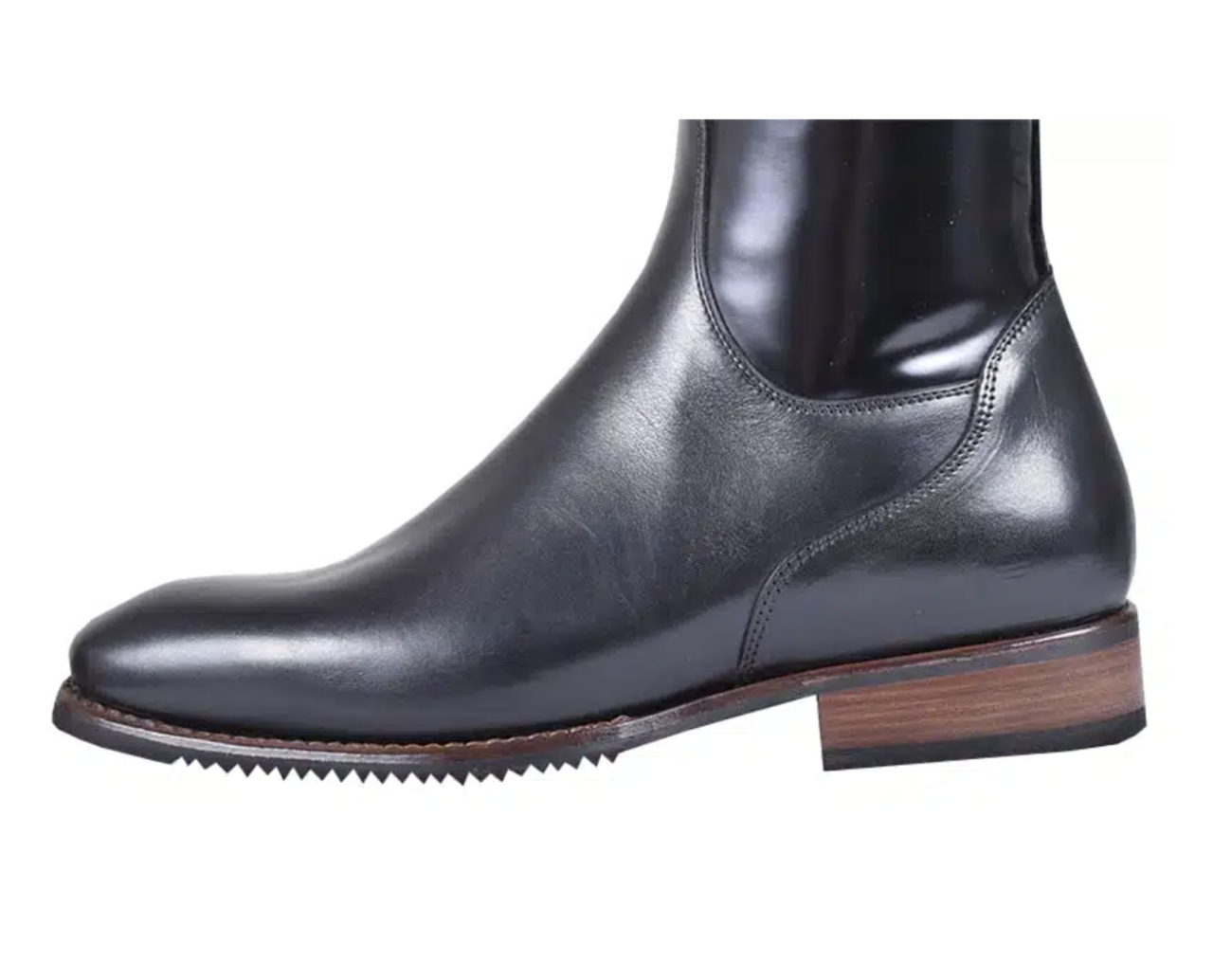 當(dāng)你第一次踏上馬背,才發(fā)現(xiàn)一雙靠譜的馬靴不僅關(guān)乎帥氣,更關(guān)乎安全與舒適。在馬術(shù)項(xiàng)目中,騎乘靴的合腳度、材質(zhì)選擇與細(xì)節(jié)配置直接影響騎手的表現(xiàn)與舒適度。尤其在多變的訓(xùn)練與比賽環(huán)境中,這些細(xì)節(jié)往往成為決定騎乘體驗(yàn)的關(guān)鍵。 每一環(huán)節(jié)都需綜合考慮運(yùn)動(dòng)特性與個(gè)人習(xí)慣。只有科學(xué)配置與細(xì)致養(yǎng)護(hù),才能讓馬靴在賽場內(nèi)外持續(xù)提供可靠支持,助力騎手與馬匹的默契配合。每一處配置都藏著提升騎乘表現(xiàn)的關(guān)鍵。 盛裝舞步靴 在盛裝舞步中,馬匹和騎手需要使用最少的輔助工具,完美地完成一系列預(yù)先設(shè)定的動(dòng)作。為了讓騎手專注于節(jié)奏、規(guī)律性、放松以及與馬匹的互動(dòng),舒適且結(jié)實(shí)的靴子是至關(guān)重要的。 盛裝舞步靴后部設(shè)有加固結(jié)構(gòu),并采用不同硬度的皮革制成,因此踝部不會(huì)出現(xiàn)明顯的下垂或褶皺。“煙囪式”設(shè)計(jì)能夠支撐騎手在馬鐙中相對平坦的腳部位置,并保持修長優(yōu)雅的腿部姿勢,從而最大程度地與馬匹的側(cè)身接觸。