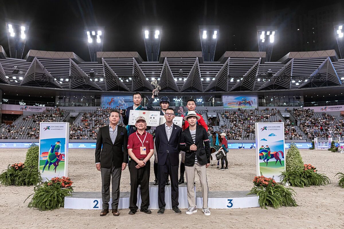 決賽開啟,難度提升 在10月6日下午的六歲馬決賽中,天色漸暗,賽場周圍的LED屏對于馬匹注意力的影響比上午大很多,這也為現(xiàn)場的馬與騎手帶來了更高的考驗(yàn)。 調(diào)教師通常會(huì)關(guān)注年青馬的專注度、現(xiàn)場表現(xiàn)力、性格等,因此現(xiàn)場比賽經(jīng)驗(yàn)不夠多的年青馬,如果能展現(xiàn)很好的天賦、穩(wěn)定的發(fā)揮和跳躍能力,即便是在有打桿的情況下,也會(huì)被視作有潛力的馬。 最后,張勇搭檔“青澀女孩”以零罰分、75.38秒的行進(jìn)時(shí)間,獲得六歲馬決賽的冠軍。騎手滿都呼搭檔“養(yǎng)樂多”獲得亞軍,騎手高曉坤搭檔“阿克琉斯”獲得季軍。 賽后,張勇在接受馬術(shù)在線采訪時(shí)表示,非常高興這次能夠來上海參加中國年青馬場地障礙賽,往年的每一屆年青馬大賽我都會(huì)參加。久事的場地條件非常好,也很國際化,不過對于沒有太多參賽經(jīng)驗(yàn)的年青馬來說,在較為封閉的場館里比賽會(huì)有些膽怯。 “因?yàn)槲移綍r(shí)也做一些年青馬的調(diào)訓(xùn)工作,所以這次我?guī)Я?匹馬過來參賽,5、6、7歲的馬匹都有。對于年青馬來說,最重要的是關(guān)注它們的身心健康,不要一味地追求成績,而是通過多參加賽事來增加它們關(guān)于比賽的快樂經(jīng)歷,同時(shí)促進(jìn)它們成長?!?/span> “年青馬是我們國內(nèi)彌補(bǔ)年青馬調(diào)教方面的一個(gè)很好的賽事,我希望中國年青馬場地障礙賽能夠持續(xù)辦下去,我也一定會(huì)每年都參加?!睆堄滦χ偨Y(jié)道。 七歲馬決賽的路線難度再次提升,例如,增加了一個(gè)雙橫木很小角度接ABC組合障礙。來自西班牙的騎手薩烏爾·普爾圖斯(Saul Portos)搭檔馬匹“N YANDRO”首先登場,全程將馬控制在柔和、完美的節(jié)奏中,馬匹自身也會(huì)在跳躍障礙時(shí)有意識(shí)收緊前腿與后腿,這種對于障礙的小心性是年青馬可貴的品質(zhì)之一。 擁有豐富年青馬調(diào)訓(xùn)經(jīng)驗(yàn)的中國騎手劉同晏隨后搭檔“要塞中心”出場,也順利以零罰分完賽,與薩烏爾·普爾圖斯進(jìn)入附加賽。最終,兩對人馬組合各獲得4分障礙罰分,薩烏爾·普爾圖斯搭檔“N YANDRO”以2.23秒的領(lǐng)先優(yōu)勢,奪得冠軍。劉同晏搭檔“要塞中心”取得亞軍,周小毛搭檔“星月”獲得季軍。 薩烏爾·普爾圖斯對馬術(shù)在線記者說:“這是我第一次在中國參加年青馬大賽,我來中國已經(jīng)六年了,在這期間我見證了中國馬術(shù)產(chǎn)業(yè)的發(fā)展。在歐洲,馬匹繁育是馬術(shù)產(chǎn)業(yè)里很重要的一環(huán),年青馬賽事也會(huì)有很多騎手帶著馬匹參加。如今,看到中國自主繁育的馬匹越來越多,年青馬場地障礙賽也成為亞洲首個(gè)國際馬聯(lián)認(rèn)證的年青馬賽事,這對于中國馬術(shù)未來的發(fā)展肯定是很好的,我也非常高興能夠參與到其中?!?/span> “今天我搭檔的七歲馬匹‘N YANDRO’是我的學(xué)生Angelina zimo Bian的馬,我和這匹馬配合有一年了,它在比賽中非常專注,總是盡它所能表現(xiàn)到最好,在今天比賽中的表現(xiàn)也非常好。我很希望在未來繼續(xù)參與年青馬賽事,這類賽事無論是對馬還是對人來說,都有極大的幫助?!?/span> 決賽頒獎(jiǎng)儀式 最佳調(diào)教師:劉同晏 頒獎(jiǎng)嘉賓:瑪尚馬具總經(jīng)理劉華華(左一);著名演員、歌手景崗山(右一)。 最佳馬工:盤雪潤 頒獎(jiǎng)嘉賓:天駟龍駒賽事管理有限公司高級顧問、中國年青馬大賽賽事發(fā)起人欒樹(左一);瑪尚馬具總經(jīng)理劉華華(右一)。 六歲馬級別決賽頒獎(jiǎng):張勇搭檔“青澀女孩”奪得冠軍(后中),滿都呼搭檔“養(yǎng)樂多”榮獲亞軍(后左),高曉坤搭檔“阿克琉斯”獲得季軍(后右)。 頒獎(jiǎng)嘉賓:中國電影表演藝術(shù)學(xué)會(huì)副會(huì)長、上海電影家協(xié)會(huì)副主席、上影演員劇團(tuán)團(tuán)長、國家一級演員佟瑞欣(左一);技術(shù)官員代表、賽事監(jiān)管長葉謀順(Mou soon Yap)(左二);上海久事國際馬術(shù)有限公司董事長洪磊(右二);著名歌手、音樂制作人、中國首位獲得國際歌唱比賽最高獎(jiǎng)的流行歌手羅中旭(右一)。 七歲馬級別決賽頒獎(jiǎng):SAUL PORTOS 搭檔“N YANDRO”奪得冠軍(后中),劉同晏搭檔“要塞中心”榮獲亞軍(后左),周小毛搭檔“星月”獲得季軍(后右)。 頒獎(jiǎng)嘉賓:中國馬術(shù)協(xié)會(huì)競技部部長賈大鵬(左一);技術(shù)官員代表、賽事裁判長沈曉玥(左二);上海久事國際馬術(shù)有限公司董事長洪磊(左三);著名演員、柏林電影節(jié)銀熊獎(jiǎng)最佳女主角、中國電影金雞獎(jiǎng)最佳女主角詠梅(右二);中國乒乓球運(yùn)動(dòng)員、奧運(yùn)會(huì)冠軍、世界冠軍王濤(右一)。 CSIYH1*2025年中國年青馬場地障礙賽作為亞洲首個(gè)真正意義上的國際年青馬賽事,不僅為其他亞洲國家提供了重要范本,更向公眾彰顯了中國在馬術(shù)領(lǐng)域的長期承諾:中國既關(guān)注騎手培養(yǎng),也注重馬匹未來。 |