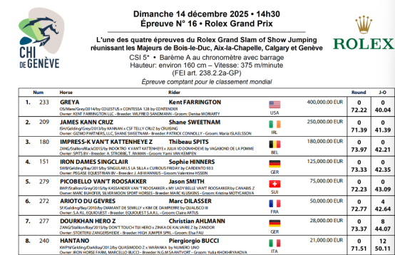 “在馬術(shù)運動中,挫折是家常便飯。但我把每一次挫折都當(dāng)作一個提醒,提醒我要保持正確的心態(tài),保持頭腦清晰,積極向前。我相信馬兒在自信和良好的氣場下會發(fā)揮得更好,會百分之百地信任你?!?/div> ?CHIG 在勞力士與日內(nèi)瓦國際馬術(shù)節(jié)合作25周年之際,一場匯聚全球頂尖騎手的巔峰對決悄然拉開大幕。日內(nèi)瓦當(dāng)?shù)貢r間12月14日,2025日內(nèi)瓦國際馬術(shù)節(jié)的壓軸賽事——勞力士大獎賽在瑞士日內(nèi)瓦Palexpo展覽中心如期舉行。 經(jīng)過兩輪扣人心弦的比賽,美國名將、勞力士代言人肯特·法靈頓(Kent Farrington)搭檔11歲的奧爾登堡母馬“Greya”,以附加賽零罰分、40.04 秒的表現(xiàn),摘得本屆勞力士大獎賽的桂冠,彌補了兩天前他在勞力士IJRC十強決賽中惜敗給英國名將斯科特·布拉什的遺憾。 賽場直擊:高手過招,精彩紛呈 首輪比賽中,障礙的高度和復(fù)雜性給所有參賽騎手帶來了巨大的挑戰(zhàn)。前兩位出場的愛爾蘭騎手丹尼爾·科伊爾(Daniel Coyle)和英國騎手本·馬赫(Ben Maher)都成功完成了比賽,但都因超時被罰1分。直到第十位出場的意大利騎手皮爾杰吉奧·布奇(Piergiorgio Bucci)策騎“Hantano”,才完成了第一個零罰分的成績。 然而,隨后的比賽中,瑞士本土騎手們都遭遇了一些挫折,包括勞力士代言人馬丁· 福斯(Martin Fuchs)和勞力士代言人史蒂夫·戈爾達(Steve Guerdat)都未能幸免,他們在雙重組合障礙的第一道障礙上紛紛失誤。 勞力士代言人肯特·法靈頓搭檔“Greya” 在日內(nèi)瓦國際馬術(shù)節(jié)勞力士大獎賽 ?Rolex/Thomas Lovelock 盡管如此,愛爾蘭騎手肖恩·斯威特納姆(Shane Sweetnam)和“James Kann Cruz”,以及法國騎手馬克·迪拉瑟(Marc Dilasser)和瑞士騎手杰森·史密斯(Jason Smith)都成功完成了零罰分。 最終,共有7位男騎手和1位女騎手晉級到競爭激烈的附加賽,而這唯一的女騎手就是勞力士代言人索菲·希納斯(Sophie Hinners)。 附加賽:電光火石,分秒必爭 附加賽的賽道更加緊湊,對騎手和馬匹的速度和靈活性提出了更高的要求。肖恩·斯威特納姆率先出場,以零罰分和一個相當(dāng)快的速度完成了比賽。隨后出場的杰森·史密斯在后半程找到了節(jié)奏,但未能超越斯威特納姆的時間。 ?CHIG 緊接著,肯特·法靈頓搭檔“Greya”登場。這對組合以驚人的速度和精準(zhǔn)度飛躍障礙,最終以比肖恩·斯威特納姆快1.35秒的優(yōu)勢問鼎冠軍,這也是他繼2017年后,再次斬獲日內(nèi)瓦國際馬術(shù)節(jié)勞力士大獎賽的冠軍。 ?CHIG “這就是我們在日內(nèi)瓦看到的比賽水平——最好的馬、最好的騎手,勝負往往只差幾十分之一秒。周五我輸?shù)裟且粓?,我對自己很生氣?/span>因為馬跳得非常好,而我在最后做了一個錯誤判斷。所以我今天非??释倪M自己的表現(xiàn),這次非常成功?!?/span> ?馬術(shù)在線/何亦紅 冠軍感言:人馬合一,榮耀加冕 賽后的發(fā)布會上,肯特·法靈頓毫不吝嗇對“Greya”的贊美,坦言冠軍的誕生,“Greya”功不可沒:“‘Greya’真是一匹了不起的馬。它非常有天賦,我們所做的,只是幫助它發(fā)揮出它最好的狀態(tài),就像今天它展示的那樣。 它非常謹慎,跳躍時身體異常靈活。這是它在賽場上最大的優(yōu)勢:速度驚人,身體柔軟,腿收得很好。在馬廄里,它是當(dāng)之無愧的女王,極度自信,絕對是這群馬的老大。今天贏得勞力士大獎賽,無疑是它職業(yè)生涯中迄今為止最輝煌的一役!” ?馬術(shù)在線/何亦紅 “我真的非常希望今天能有個好結(jié)果?!狈`頓繼續(xù)說道,“前幾天,我對自己有些惱火,因為我覺得‘TOULAYNA’跳得非常好,但我的表現(xiàn)卻未能達到應(yīng)有的水平。這讓我給自己施加了巨大的壓力,帶著這種心態(tài)來到日內(nèi)瓦,我告訴自己,今天我必須做得更好。我對今天的結(jié)果非常滿意,也對我的馬感到無比驕傲,更對整個團隊能夠讓這一切成為可能,感到由衷的開心。” ?馬術(shù)在線/何亦紅 當(dāng)記者問及他在勞力士IJRC十強決賽中惜敗的感受,以及如何調(diào)整心態(tài)重新找回最佳狀態(tài)時,法靈頓坦率地分享道:“在馬術(shù)運動中,挫折是家常便飯。因為從概率上講,你輸?shù)拇螖?shù)一定會遠多于贏。最讓人沮喪的,是當(dāng)你感覺馬兒狀態(tài)絕佳,而自己卻不在狀態(tài)。對我來說,馬術(shù)就是最極致的團隊運動——馬和騎手共同組成一個最佳組合。在結(jié)果上,我感覺自己辜負了馬兒,因為我未能發(fā)揮出它應(yīng)有的最佳水平。 但我把每一次挫折都當(dāng)作一個提醒,提醒我要保持正確的心態(tài),回到賽場,新的一天,重新開始。每次跨上馬背,我都會問自己:今天我要用什么心態(tài)去騎?我不能帶著過去的怨氣,也不能帶著生活中的瑣事。上馬時,我盡量保持頭腦清晰,積極向前。我相信馬兒在自信和良好的氣場下會發(fā)揮得更好,會百分之百地信任你。我嘗試用這樣的心態(tài)去騎每一匹馬。” 談及明年的計劃,法靈頓表示,勞力士系列賽事始終在他心中占據(jù)重要位置。他最大的心愿是讓她保持良好的狀態(tài),能夠參加這些高水平的比賽,這是他最關(guān)注的目標(biāo)。 ?馬術(shù)在線/何亦紅 觀眾熱情:座無虛席,再創(chuàng)新高 本屆日內(nèi)瓦國際馬術(shù)節(jié)吸引了創(chuàng)紀錄的49,200名觀眾,他們共同見證了一場場精彩絕倫的