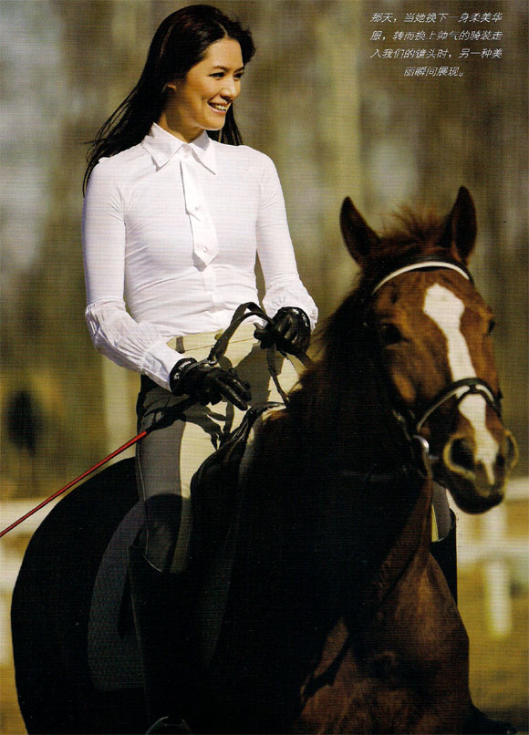 從賽艇運動員到名模,從名模到設(shè)計師,馬艷麗的每一次轉(zhuǎn)型都完美得無懈可擊。身為幸福工程的形象大使,她說,人的一生中會有不同的過程,每個過程都應(yīng)該有不同的意義和價值。于是,她下定決心為幸福工程做一輩子義務(wù)的打工者。她一手創(chuàng)辦的高級定制品牌Mary Ma,不僅以自己的名字命名以示紀念,更重要的是,她讓定制成為一種生活態(tài)度,“定制不一定就要完全打上‘奢侈’的標簽,它更多的是代表了一種生活方式,”她說。這就是馬艷麗,曾被靳羽西譽為“亞洲最美麗的女人”,賦予了“美麗”二宇更深刻的含義。那天,當她換下一身柔美華服,轉(zhuǎn)而換上帥氣的騎裝走入我們的鏡頭時,另一種美麗瞬間展現(xiàn)。 野·美麗 你知道,很多時候眼神是可以出賣一切的。 可能是因為向來低調(diào)的作風,馬艷麗很少開口說話,采訪也是有問才答,倒是她的貼身助理在挑馬前一直在囑咐,你們一定要保證她的安全,她雖然喜歡但不是經(jīng)常騎...... 為了拍照,攝制組挑了一匹比較有型的馬,騎師在馬場里活動了幾圈,馬有些躁動,想起助理的話,我們還是擔心地問了一下,“您覺得它可以嗎?”“嗯,沒問題?!蔽覀儽凰龍远ǖ幕卮鸹A艘幌拢幻靼姿窍騺砟懘?,還是確實心里有底。倒是她那鎮(zhèn)定的眼神,給了我們不容置疑的肯定。 整個過程相當順利,本以為這是她曾身為模特的特質(zhì),但攝影師說  “她就是在生活,與拍攝無關(guān)?!边@讓人突然注意到,鏡頭前一身騎裝的她那么自然地與馬兒親近著,不退卻、不躲閃,像極了一個老騎士在寵溺著自己的坐騎。翻身上馬,利落的身手,一招一式都做得有板有眼,在馬場里絲毫不覺遜色。 對于教練的夸獎,馬艷麗也只是淺笑著說,或許是因為之前練過體育的關(guān)系,協(xié)調(diào)性好,所以只要是和運動有關(guān)的項目,像高爾夫、馬術(shù),她都比一般人學得快,而且學得好,這完全是天賦使然。對于自己第一次騎馬的情形,對她來說,已經(jīng)過去十年了,但仍歷歷在目,因為那種怦然心動的感覺并不見得時常有,而她很慶幸能有機會遇到這么一項美好的運動,并一直堅持至今。 “那是1997年某一天的傍晚,我和幾個老師、同事借著演出的機會去參觀‘天下第一城’。在我們吃小吃的店旁邊正好有個馬場,里面是當?shù)剞r(nóng)民圈養(yǎng)的馬。馬場不是很大,但很漂亮,和現(xiàn)在專業(yè)的馬場相比起來一點也不遜色。”馬艷麗回憶道。那時候從沒有騎過馬的她,醉心于眼前的美景,于是躍躍欲試。“我騎著馬順著一個斜坡一直向下走,馬越走越快,后來甚至有點小跑,一直跑過條小溪。記得那時候是秋天,一路上風景很美,但其實當時真的很危險,如果馬快跑起來,沒有任何經(jīng)驗的我是很容易出事的,所以感覺那時候的自己好勇敢。”她笑道。或許因為無所畏懼,或許因為一種征服感,第一次騎馬的經(jīng)歷就讓馬艷麗深深愛上了它,并且從此一發(fā)不可收拾。“那種在馬背上迎風飛馳的感覺真的很享受,無法言喻?!?/div> 一年后一次偶然的機會,讓她再次體驗馬兒飛奔時帶來的刺激。1998年,她剛到北京,舉目無親,于是她到懷柔去看個親戚?!澳抢镉幸粋€很大的馬場,雖然那時候我的技術(shù)不是很好,或者應(yīng)該說毫無技術(shù)可言,但仍舊無法抵抗那種吸引?!彼f。其買,那是一個很唯美很浪漫的畫面,一個美麗的少女騎在馬背上,迎著風,馳騁著,一頭飄逸的長發(fā)在風中飄散,夕陽西下,點點斑駁的陽光映射在身上,如同女神從天而降。但對馬艷麗來說,真實的情況并沒有描述中那么美好,當時整個空曠的馬場就只有她一個人在飛奔?!皠傞_始只是坐在馬背上,后來慢慢地行進中,再后來它突然開始奔跑起來,一連跑了三圈,速度很快,讓我措手不及,唯一的本能反應(yīng)就是緊緊地抓住韁繩。”她帶著一點后怕說道。當她從馬背上下來時,發(fā)現(xiàn)自己的雙手已經(jīng)全部破皮,并且還冒出血絲,當時在馬背上的她,卻緊張到一點感覺都沒有,完全沉浸在速度的快感中?!半m然很危險,但很讓人享受?!彼⑿?。 美·和諧 曾經(jīng),一次意外,差點讓她想要放棄騎馬,但心中卻是萬分不舍。“那是1999年在拍《傾城之戀》的時候,當時有場戲是我和馬曉偉并排騎著馬。導演在前面的車上,可能是之前與馬的溝通不夠充分,我騎的馬一直很緊張,加上我對馬的控制能力不是很強。于是,在車子開動的時候,馬受驚了,開始加速奔跑。我有點害怕,但并沒有慌亂,只是拼命抓緊韁繩控制平衡,然后告訴自己說一定要冷靜。在拐彎處我想跳下馬,但是如果我跳下去,旁邊馬曉偉的馬一定會踩到我。幸好,那時候馬曉偉很機智,硬是讓自己的馬換到了我的另一邊,和我拉開有一段距離,很有英雄救美的感覺。于是我才努力把腳從腳蹬里面拔出來,下意識地往外跳,但還是被馬拖了一段距離?!被貞浧疬@段驚險往事,馬艷麗仍心有余悸,“之后我就失去意識了,大概昏迷了至少20分鐘。當醒來時看到我眼前是大家的臉,一張挨一張,都緊張地看著我,很擔心的樣子,而我,完全忘了剛才發(fā)生了什么事情。當時我穿的是白色衣服,地上因為剛下過雨很泥濘,我看著自己渾身都是泥,還覺得很茫然,身體上也沒有什么不適,總之是種很奇特的感覺。后來去醫(yī)院做了一遍檢查,還好,沒受什么傷?!?/div> 那次是她這輩子第一次經(jīng)歷的暫時