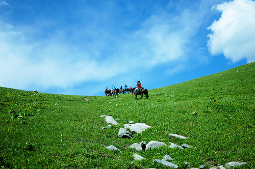 2014年5月31日,我們廈門四位馬友如期出發(fā)前往烏魯木齊。因為特殊原因,原定5月25日的第一組報名隊員沒有成行,所以我們5月31日第二組出發(fā)的中國最美騎馬探險喀納斯之旅就變成了“第一組”,8名“天不怕地不怕”的成員來自河南、深圳、廈門等地。 有人說,為什么我們喜歡馬背之旅,因為在這里大家是平等的,不單有美景,還有美好的人。河南的美女大姐楊春帶著還在上初中卻已是騎行多年的小美女萱萱;隨行還有攝影家級別的、與大導(dǎo)演“張藝謀”同名的深圳馬友,網(wǎng)名“逆光”的文藝青年;還有年齡最大、在馬術(shù)場內(nèi)喜歡跳障礙的老帥哥應(yīng)總;一路有機會就喜歡靜思打坐的深圳阿玉;有著十幾年野騎經(jīng)驗一路領(lǐng)跑的謝大醫(yī)生,一路上大伙像一家人般互協(xié)互助,歡聲笑語總在耳邊回蕩。當然還有意想不到的邊防戰(zhàn)士,看著他們的身影,頓時安全感倍增。辛苦了,同志們。 太陽到了晚上10點還不下山,卡爾橋上空飛鷹盤旋,不知是為了晚餐時羊肉味道而來還是久違了遠方的來客。第一個晚上,凌晨4點被凍醒,拉開帳篷,才發(fā)覺帳篷上沾滿白色冰霜,真正體驗了一把什么叫“溫差”。 早晨當大家還在夢鄉(xiāng)中的時候,我早早起床,沒想到碰到鄰居應(yīng)總也早起。 第二天:沿著山谷行進,兩旁的樹開滿白色小花朵,而后牽馬過鐵板橋,坐在高高的馬鞍,沿著坡度35度、腳下盡是巖石的小山路蜿蜒而上,旁邊是深深的山谷,馬蹄下松動的石塊,馬的自重、鞍包、人體重量、重心的負擔干擾,我們真的擔心馬兒能走這樣的路嗎?事實是我們的擔心是多余的,馬兒的爬山能力和耐力實在讓人驚嘆不已,60度的坡度,一口氣就上去,還不帶喘氣的。馬背上的人氣喘吁吁,馬兒回過頭不屑地看了看馬背上的“騎士”,哈哈。 眼前美不勝收的雪山、河谷、杉木林使人忘記了危險就在腳下。擔心是多余的,哈薩克馬, 好樣的! 越過最高山脈,扎營恰爾巴斯小木屋旁。 第三天:騎馬向西沿山脊前往石林,傍晚回到恰爾巴斯營地。 第四天:早飯后騎馬進入圖爾蓋提大牧場,穿越阿爾泰地區(qū)最大的夏牧場;一路小雨,夜宿禾木。 第五天:晨霧禾木,阿吉山莊。清晨的禾木安靜祥和,有牧民家里升起了炊煙,陽光透過霧氣灑在一座座木屋上,美極了,感覺相機內(nèi)存真的不夠用,聽說攝影家逆光的相機,早在兩天前已經(jīng)透支了,還好我有“私家珍藏”的內(nèi)存卡,哈。 第六天: 喀納斯湖,一樣的美景,一樣的美麗心情,還多了一個目的,那就是尋找湖怪,在一處激流處,還偶遇漂流的年輕人。這里的景色非常奇特,山頂白雪皚皚和山下綠色蔥蔥同時存在,季節(jié)和時間仿佛在這里交融,大自然的神奇讓人驚嘆不已,300公里6天行程,在這里畫下一個完美的句號。 返程的余暉格外美,短短6天行程,我們8位成員已經(jīng)結(jié)下深厚的革命友誼,分別只是短暫的,說好了要再相聚。一路上,滿目的美景總能給我們一次次的驚喜和感動,“隨行攝影師”逆光為每位成員留下美好的草原回憶。 還未離開,就已開始想念,謝大醫(yī)生又打呼了,阿玉又說夢話了,我們都睡得很香,因為我們都醉了,醉在了北疆的美景里…… |