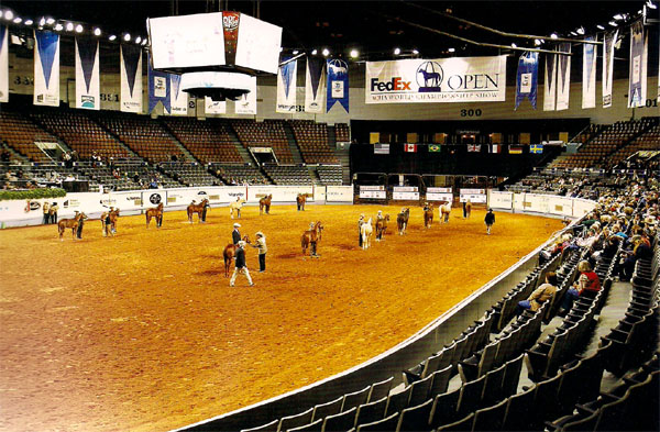 2009年11月,我們行九人應(yīng)肯塔基州政府的邀請(qǐng)前往美國參觀考察馬業(yè)。此行最重要的目的地是美國中西部的俄荷拉荷馬城.我們要去參觀11月5日開始的夸特馬協(xié)會(huì)世界杯。本次比賽是在俄荷拉荷馬城國家博覽館公園舉行的,為期16天。比賽期間,世界上最有靈氣的夸特馬及其教練和馬主人都齊聚在這里??傆?jì)有3464匹馬參賽,它們來自美國的46個(gè)州、加拿大的6個(gè)不同省份,同時(shí),巴西、法國、德國、瑞典、英國也有馬匹參加比賽。 本次比賽的內(nèi)容非常豐富,有展示育種水平的馬秀比賽.有展示騎術(shù)的西部騎術(shù)賽(REINING)、截牛(CUTTING)賽以及障礙賽等100多個(gè)小項(xiàng)目。同時(shí),在世錦賽上還會(huì)有一匹馬榮獲令人艷羨的“超級(jí)夸特馬”稱號(hào)。能夠獲得這個(gè)稱號(hào)的馬匹,必須是在美國夸待馬協(xié)會(huì)世錦賽的兩個(gè)大項(xiàng)中的至少三個(gè)小項(xiàng)目中獲得最高分。本次比賽共設(shè)270萬美元的獎(jiǎng)金,這可能是一個(gè)馬種協(xié)會(huì)比賽中設(shè)獎(jiǎng)金最為豐厚的賽事。由此可見,夸特馬協(xié)會(huì)是世界上最大的馬種協(xié)會(huì)不是徒有虛名。 我們到達(dá)俄荷拉荷馬城時(shí)已是11月18日,比賽已經(jīng)到了最后的階段,留下的是幾千匹馬經(jīng)過大浪淘沙后的精華。這是2歲公馬的選秀,選秀標(biāo)準(zhǔn)是嚴(yán)格按照典型夸特馬的特征為參照:強(qiáng)健的肩部和后臀,短而寬的頭部,比例適中的肢蹄,靈活正確的步伐、馬匹安靜程度等等。進(jìn)入決賽的馬, 一字排開,列隊(duì)站立。每一匹都經(jīng)過練馬師的精心打扮,油光的毛色,黑亮的蹄掌,尤其是經(jīng)過化妝處理的眼睛,充滿了靈性。有位老兄手里一直拿著一個(gè)類似“摩絲”的東西,在展示場(chǎng)地還不時(shí)對(duì)馬匹進(jìn)行補(bǔ)妝。這樣的年度選秀看似娛樂,實(shí)際上可以提升育種的水平,明晰夸特馬的標(biāo)準(zhǔn)。 趁著終場(chǎng)休息的時(shí)候,我轉(zhuǎn)到緊鄰賽場(chǎng)的馬廄區(qū)域。那些裝飾精美的臨時(shí)馬廄讓我頓時(shí)眼前一亮,有西部的風(fēng)格、墨西哥風(fēng)格還有英式風(fēng)格等等,無不凸顯馬主的審美取向。門前精心擺放著一排排金馬獎(jiǎng)杯是在告訴我們每個(gè)馬房的不凡實(shí)力。三兩個(gè)舒適座椅,一杯冒著熱氣的咖啡,使本來灰禿禿的簡易馬廄瞬間變得如此溫馨。馬秀,不只是秀馬,也是秀生活。馬賽不只是比賽,更是享受和馬在一起的心情。這也算是一種境界了。 這是一匹準(zhǔn)備上場(chǎng)的馬,正在接受“梳妝打扮”。優(yōu)雅的“劉?!保h飄的長尾,锃亮的“皮鞋”,配上銀質(zhì)的籠頭。馬的漫不經(jīng)心和三個(gè)人的忙前忙后形成強(qiáng)烈的對(duì)比。我個(gè)人不太喜歡這樣‘人性化”的馬裝扮,讓一個(gè)剛勁自由的大塊頭充滿了脂粉氣,但靜下來想想,也許是人忙活的不是賽事,是心情。馬閑適的不是寂寞,是調(diào)教。 像所有大賽一樣,本次的夸特馬年終盛典同樣也是西部馬術(shù)商品的交易平臺(tái),合著老美也講究文化搭臺(tái),經(jīng)濟(jì)唱戲。小到各種各樣的西部首飾、馬鞍、不同圖案的汗屜、騎馬服裝、大到西部家具、越野運(yùn)馬車應(yīng)有盡有。一圈下來,已經(jīng)是手拎肩扛買了一堆了。這些東西中,我最喜歡這個(gè)印第安姐妹用傳統(tǒng)手工制作的馬形銀飾,別具一格。 從來只知道夸特馬做西部騎術(shù)沒有聽說過夸特馬跳障礙,這次算是眼見為實(shí)了??涮卣系K馬一般體尺很高,有的接近一米八,外形幾乎和純血差不多。相對(duì)于英式馬術(shù)的障礙,夸特馬的障礙比賽路線設(shè)計(jì)上要容易多了。攔數(shù)少,高度適中,回轉(zhuǎn)也沒有那么難。我個(gè)人感覺,超越障礙在夸特馬的年度盛會(huì)上絕不是主流,美國人更喜歡騎著夸特馬截牛、繞桶或者做Reining(美國人稱為西部的盛裝舞步),當(dāng)然夸特馬跳躍障礙也不是美國人的培育初衷。這段文字要是被我的朋友SHERRY看到了一定不同意。她常常說:“夸特馬什么都能做,EVERYTHING!” 大會(huì)最后一天的Reining決賽,堪稱經(jīng)典。世界最高水平西部騎手匯聚于此,展現(xiàn)其精湛的騎術(shù)水平亦是展示西部馬術(shù)的精髓所在。Reining是國際馬術(shù)聯(lián)合會(huì)正式接納的比賽項(xiàng)目,它通常被稱呼為西部的盛裝舞步。整個(gè)比賽的過程由一系列規(guī)定動(dòng)作組成:慢跑小圈乘、跑步大圈乘、空中換腿、急速后肢旋轉(zhuǎn)、直線全速急停等。這一切的動(dòng)作完全靠騎手精準(zhǔn)的幾乎不能察覺的輔助完成,并力求馬對(duì)人的指令絕對(duì)欣然響應(yīng),從而展現(xiàn)人的調(diào)訓(xùn)水平與馬的運(yùn)動(dòng)能力和天賦在這樣的比賽中,你永遠(yuǎn)看不到強(qiáng)拉硬拽的騎手,瘋狂反抗的馬匹。有的只是瀟灑穩(wěn)健的騎坐,柔軟下垂的韁繩,張弛有度,收放自如。而像這幅照片那樣,短距離全速急停成了西部馬術(shù)的標(biāo)志性動(dòng)作。 這是高速急停后馬的狀態(tài),松弛、穩(wěn)定并繼續(xù)等待騎手的指專。據(jù)說像這樣的調(diào)教水平連許多歐洲的障礙騎手都嘆服。許多人認(rèn)為牛仔是真正的馬語者,他們用精湛的訓(xùn)馬技術(shù)為自己在英式為中心的國際馬