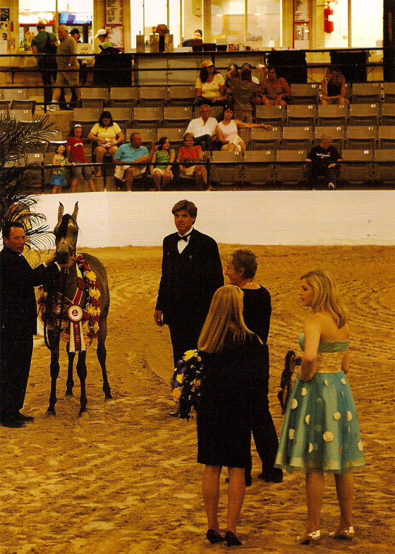 對(duì)大多數(shù)中國(guó)愛(ài)馬朋友而言,對(duì)美國(guó)馬業(yè)的了解,似乎僅止步于牛仔和其跨下的夸特馬(Ouarter Horses)的經(jīng)典形象上。這特點(diǎn)如此強(qiáng)烈,以至于當(dāng)美國(guó)埃及純血阿拉伯馬業(yè)的一切展現(xiàn)在眼前時(shí),你可能都會(huì)在心里驚呼這完美的馬,這完善優(yōu)秀的阿拉伯馬業(yè)體系,難道是一夜之間的神奇? 其實(shí)不然,美國(guó)純血阿拉伯馬業(yè)已發(fā)展了四十多年之久,目前,埃及純血阿拉伯馬業(yè)相對(duì)于美國(guó)馬業(yè)6900萬(wàn)匹的龐大數(shù)字卻僅有4700匹。初聽(tīng)起來(lái),這幾個(gè)數(shù)字之間好像不合邏輯,然而,埃及阿拉伯馬業(yè)的特點(diǎn)也正是由這幾個(gè)數(shù)字關(guān)系折射出來(lái):經(jīng)年不斷地培育研究,才得以保持住埃及系阿拉伯馬的純正血系,讓這沙漠神駒風(fēng)采依舊,投資價(jià)值連年飆升。在這里,大家可能會(huì)有疑問(wèn):為什么埃及阿拉伯馬會(huì)在美國(guó)定居?那是因?yàn)槊绹?guó)的埃及阿拉伯馬是1940年代由穆罕默德·阿里(Mohamed Ali)帶到埃及的馬匹后代,美國(guó)人于1960年代將其中最好的馬匹買(mǎi)下并帶回美國(guó),美國(guó)金字塔協(xié)會(huì)便開(kāi)始專(zhuān)門(mén)從事埃及阿拉伯馬的繁育。由于其質(zhì)精量少,使它成為當(dāng)今美國(guó)馬業(yè)珍貴的寵兒。 2008年的埃及馬展(Egyption Event),于6月2日至7日在美國(guó)肯塔基州(Kentucky)的列克星敦(Lexington)舉行。如果你是搭乘飛機(jī)而來(lái),并有幸獲得一個(gè)臨窗的座位,那么你就會(huì)看到一個(gè)與眾多美國(guó)城市迥異的地方:滿(mǎn)目里是一塊一塊由欄桿圍成的綠色草地,起伏的地勢(shì)點(diǎn)綴著由高空而望像“西蘭花”狀樹(shù)冠的樹(shù)木,使草地并不顯呆板,只覺(jué)是佳境一處,心里立刻就先生出喜悅來(lái)。 飛機(jī)愈來(lái)愈近時(shí),草地上的“幾星幾點(diǎn)”也由小變大,仿佛在綠絲絨上熠熠生輝的各色珍珠,不用說(shuō),那就是馬兒了。頂著“世界馬都”頭號(hào)的列克星敦,果然第一眼就氣質(zhì)不凡。這里匯聚了450家私人馬場(chǎng),擁有占地逾1200英畝的世界上唯一一家以馬為主題的馬公園。馬公園里坐落有國(guó)際馬博物館,假如你乘坐四輪篷車(chē)兜轉(zhuǎn),你還會(huì)看到50種外形特點(diǎn)各異的馬匹的身影。 馬公園的年歷上羅列的上百種賽事,也會(huì)讓你在每個(gè)月都能看到不同的馬賽活動(dòng)。2010年此地將承辦FEI世界馬術(shù)錦標(biāo)賽(Alltech FEI World Equestrian Games),而我們此次要觀(guān)看的埃及純血馬賽就是這里6月里的亮麗風(fēng)景。 賽事內(nèi)容有不同分組的級(jí)別賽,年輕馬、牡馬、種公馬的展示評(píng)比和拍賣(mài)等。展示、交流、評(píng)比、拍賣(mài)這些商業(yè)運(yùn)作活動(dòng)讓阿拉伯馬業(yè)的羅盤(pán)轉(zhuǎn)動(dòng)起來(lái)--馬公園的賽事搭建的就是這樣一個(gè)平臺(tái)。 作為金字塔協(xié)會(huì)幾十家會(huì)員之一和北美最大的埃及純血阿拉伯馬繁育中心的美國(guó)阿拉伯馬有限公司,恰逢三十年華誕,而立之年就已經(jīng)擁有過(guò)去十年來(lái)第一名的精品馬匹的佳績(jī)。在美國(guó)每年降生的350匹埃及純血小馬中,就有60匹降生于這個(gè)馬場(chǎng)。成績(jī)斐然的公司擁有者朱迪(Judy SirbasKu)女士卻以一種開(kāi)放、希冀的心胸給予其他阿拉伯馬業(yè)同仁幫助和支持。因?yàn)樗_信埃及純血阿拉伯馬的繁育對(duì)于我們的世界是有價(jià)值有意義的。在給客戶(hù)提供高質(zhì)量馬匹的同時(shí),她也不吝服務(wù)和支援,共同享受已有的可貴經(jīng)驗(yàn)。也正基于此,2007年12月,朱迪的3匹純血阿拉伯馬,由其馬主“世界兒童基金會(huì)董事”Jack先生與“世界兒童基金會(huì)亞太區(qū)總裁”王志剛先生,共同達(dá)成了與中國(guó)的首次親密接觸。朱迪的丈夫--和藹可親的吉姆( Jim),以及總經(jīng)理Shawn Crews和他們的26名員工在得克薩斯州(Texas)的韋科(Waco)馬場(chǎng)共同凝聚并釋放著一種友善、熱情、敬業(yè)、真誠(chéng)的美。 此次馬賽的主角--阿拉伯馬,被認(rèn)為是世界上最古老、神秘的馬種,它是由阿拉伯半島惡劣沙漠氣候飛升而出的神性生靈,仿佛中國(guó)涅磐而生的鳳凰。即使把它置于世界各地不同的馬種之中,它也絕對(duì)是醒目的。它的美是驚人的、過(guò)目不忘的,平淡于它是不合適的。它的美仿佛舞蹈中的芭蕾,舞步輕盈,翩翩如風(fēng)。它的內(nèi)在又是敏感聰慧的,因此反應(yīng)在行動(dòng)上就是靈活和快速。在人類(lèi)漫長(zhǎng)的征戰(zhàn)史中,這些特點(diǎn)常常成為貝都因騎士對(duì)敵人進(jìn)行突襲的法寶。公元632年的阿拉伯圣戰(zhàn)中,它也以驚人的速度和耐力馱著它的圣戰(zhàn)勇士征服了中亞、北非和歐洲南部。 純血阿拉伯馬的特點(diǎn)異常明顯,相較于其他馬種的18根肋骨、6根腰骨、18塊尾椎骨的構(gòu)架,它的對(duì)應(yīng)數(shù)值是17、5和16,這締造了它小而緊湊的體形。它有著旗桿般高高翹起的尾巴,鼻梁骨凹陷的臉部輪廓,鶴頸般靈活挺拔的高傲脖頸,腰背短直,四肢細(xì)小修長(zhǎng)。它有著孩子般的好奇眼神,呼呼翕動(dòng)的大大鼻孔,假若置身于被人們關(guān)注的地方時(shí),周身上下會(huì)立刻傳達(