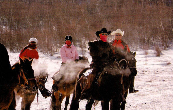 集結(jié) 初五早上8點中,老王哥準(zhǔn)時出現(xiàn)在我家樓下,裝行李,上車,和各位美女打招呼,上壩的感覺一下子就讓我興奮起來。夏天上壩對我來說已經(jīng)習(xí)以為常,但是冬天去那里還真是頭一次,雖然我們都帶了很多衣服,對于那里的寒冷程度,心里還是比較打鼓的。好在一路上的歡歌笑語,讓我們的心情非常放松,隨著氣溫逐漸的降低,路上的景色也出現(xiàn)了變化,在幾個大轉(zhuǎn)彎后從北京周邊的土山,變成了白雪覆蓋的雪山,3個半小時后就到達(dá)了壩上。 騎馬 下車后的溫度是零下19度,還真有些讓我們接受不了,而且據(jù)說這是壩上今年最冷的一天,呼嘯的西北風(fēng),讓我們很是猶豫要不要騎馬,結(jié)果我們還是沒能抵制住能忽悠的老王哥,大家開始準(zhǔn)備上馬,壩上的馬這個時候已經(jīng)變成了玩具的感覺,本來就體型矮小,再加上那變大的肚子,長長的毛,有些馬的蹄子上還粘著5厘米左右厚的冰坨,猶如穿著水晶的高跟鞋,可愛死了。這個時候一個比較神奇的人出現(xiàn)了,那就是盧彥,聽說是從塞罕壩自己開車趕過來的。這是什么樣的執(zhí)著精神??!大家整裝后出發(fā),每個人的形象可以貼切的用狗熊、大粽子等形容詞了……出門走了大概3分鐘,我心里就后悔的要命,那是冷么,簡直是冷死了,我的耳朵瞬間就被凍麻了,強(qiáng)風(fēng)透過風(fēng)鏡的縫隙,瘋狂的吹著我的臉,臉和眼睛都疼的要命,我不得不用手去擋著,但是作用還是不大,手也開始僵硬了。好在過馬路后大家開始放繃子了,血液循環(huán)的加速讓我感覺稍微好了些,開始有點精力欣賞壩上冬日的雪景了,真是一個白色的童話世界。為配合老王哥拍照片,我們開始瘋跑,馬蹄把白雪踢的四處飛濺,我們像天真的孩子一樣,帶著馬兒在這個純凈的世界,盡情撒野。作秀的時候到了,老王哥下馬,拿出他那非常專業(yè)的照相機(jī),開始給我們咔嚓、咔嚓……這時我們發(fā)現(xiàn)雪上飛的車深陷在了一個雪坑里,只見他拿出一個鏟子,用那瘦小身軀,飛快地挖雪,周圍堆滿了觀看的人群。拍照!拍照 拍照!在一陣亂跑亂拍之后,我們開始打算往回走了,這時葉赫和壞壞好像還精力十足,打算再去其他地方跑跑,人和人差別怎么這樣大呢?在往回跑的路上發(fā)現(xiàn)我的圍巾已經(jīng)被哈氣凍成了一個硬殼,臉因此被凍得刺骨的疼。終于理解什么叫做痛并快樂著了! 晚宴 回到住處后,過年的感覺就油然而生了,大家開始占領(lǐng)火炕,我們比較謙讓的人就開始打麻將了,肥婆的手氣很好,哈!豐盛的晚宴終于開始了,喝著盧彥帶來的女兒紅,吃著老鄉(xiāng)包的餃子,聊著馬隊的編年史,聽著大家譏諷雪上飛,怎一個樂字了得!看著窗戶上面凍得非常漂亮的冰花,我們開始討論晚上睡覺問題了,開始壞壞提議按車睡,估計雪上飛,老王哥樂了,盧彥哭了,后來大家感覺不妥提議按星座睡,結(jié)果就是越來越復(fù)雜,最后我們是按性別睡的。 再騎馬 第二天的天氣和第一天簡直是天壤之別,晴天無風(fēng),絢爛的陽光,毫不吝嗇的灑在我們身上。馬隊的美女們當(dāng)然不會放過任何擺pose的機(jī)會,開始在老鄉(xiāng)家的草垛上,帶著皮帽子,拿著草筐,耙子亂拍一氣!瘋狂的一群人又開始備鞍子上馬了,我和蝎子肥婆等不抗造的,選擇了坐車,我被老王哥分配了任務(wù),拍照(大家看到比較好的,稍微專業(yè)點的照片都是我拍的)。我們?nèi)サ氖墙?jīng)典路線情人谷,冬天的這里天是寶石藍(lán)的,山是白色晶瑩的,樹是傲立雄風(fēng)的,我們是歡騰雀躍的!大家騎馬跑得非常盡興,就是辛苦了我們兩個攝影師,一路的提前下車,找角度,指揮騎行路線,可當(dāng)我們看到雪上飛和壞壞用雪打仗的時候,受到了啟發(fā),開始計劃攻擊壞壞,我們幾個先假裝靠近他,然后在一起用雪球來襲擊,他當(dāng)時在馬上,居然還企圖用馬來踢我們,后來還是總吃虧,就下馬來應(yīng)戰(zhàn),結(jié)果就被我們按在了地上,大家拿身體用力的砸呀!這時我看到了壞壞的經(jīng)典動作,就是毫不還擊,只是用手托起臉,任由我們欺負(fù) 事后采訪才知道,他說形象很重要!第二個被襲擊的就是老王哥了,什么叫做“人老尖”啊,同樣的方法,老王哥居然能迅速的進(jìn)行反擊,我們3個還都被老頭用大雪塊砸的夠嗆,一點也沒有賺到便宜…… 歸程 我們走懷柔回的北京,開始計劃中午在豐寧吃魚,結(jié)果沒有開,不知是誰決定去懷柔吃飯。想想那遙遠(yuǎn)的路程,我決定睡覺了,一路迷迷糊糊餓得半死的狀態(tài)下,我們終于到了,大吃特吃后,終于非常順利地回到了北京! |
