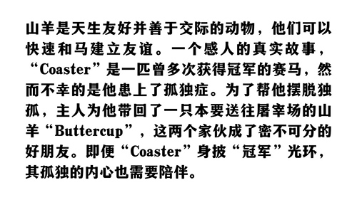 你知道馬是群居動(dòng)物嗎?這就是事實(shí)! 馬是需要社交的,如果他們沒有得到渴望的陪伴,比如和其他馬一起,他們會(huì)變得孤獨(dú)焦慮,而馬主有時(shí)很難滿足他們的陪伴需求。幸運(yùn)的是,馬可以與很多家畜和寵物親密相處。因此,是時(shí)候安排其他的生物給予他們陪伴了。 可以和馬和諧相處的動(dòng)物: 每個(gè)事物都是獨(dú)立的個(gè)體,都有自己獨(dú)立的世界。但因?yàn)椤坝心阍凇北悴辉俟聠?,寂寞。人們因?yàn)楣陋?dú),把動(dòng)物馴化成寵物,這種跨越種族的陪伴也變得溫馨而可靠。 |