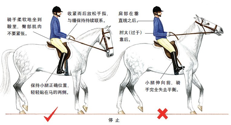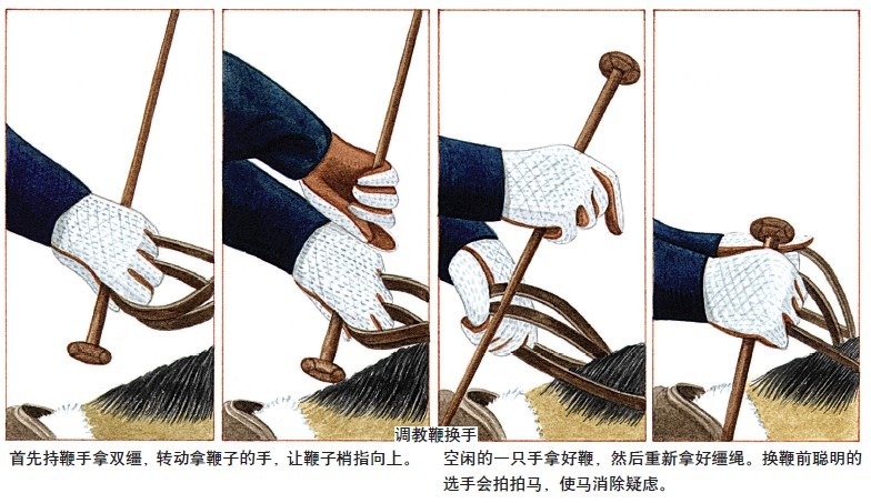 身體的重量 初學(xué)者特別應(yīng)注意坐在鞍子中間,平均分配體重。一旦扭曲畸形習(xí)慣養(yǎng)成是很難改正的。 扭曲習(xí)慣的騎手也會使馬變得扭曲,因?yàn)轳R總是處于騎手重心之下并朝著重心方向前進(jìn)。 坐姿不正的騎手可通過不一樣長的蹬帶看出。事實(shí)上,是很可能由于騎手滑向左側(cè)或右側(cè),就會把身體更多的重量放到相應(yīng)的腳蹬上。 轉(zhuǎn)彎和圈乘的練習(xí)中,當(dāng)馬換方向時,普遍的錯誤是騎手會滑向鞍子外側(cè)。騎手內(nèi)側(cè)髖關(guān)節(jié)垮掉重量放到外側(cè)腳蹬。向內(nèi)側(cè)倒也是錯誤的。 總是偏向一側(cè)的騎手,他跳障礙時,馬匹通常是扭曲的。當(dāng)馬騰空時,騎手偏向右側(cè)馬匹就會向右轉(zhuǎn)。這一點(diǎn)騎手可以加以利用。 必要時好的騎手會用重心給馬一個微妙的影響。特別是在高水平的訓(xùn)練或比賽時,對馬的影響會更大。選手使用重心時,會輕輕向前推動一側(cè)或兩側(cè)髖關(guān)節(jié)。 當(dāng)騎手已經(jīng)養(yǎng)成扭曲畸形的壞習(xí)慣,首先要求他的坐姿兩側(cè)均平穩(wěn)正直,而只考慮重心輔助。 長期畸形的騎手,不僅對自己本身的能力與輔助運(yùn)用有壞的影響,在這樣使用輔助時也會使馬偏于一側(cè),讓馬僵硬。 騎手的聲音 訓(xùn)練馬匹的過程中,人類的聲音扮演著重要的角色。 自從馬匹與人類相處以來,它就學(xué)會理解人類各種各樣的聲音語調(diào)。這些聲音與喂養(yǎng)時間、愉快、責(zé)備等緊密相連。一般情況下,當(dāng)叫馬匹時它知道過來。對指令也有反應(yīng),例如“立定站好”。 當(dāng)馬匹長大些,就要進(jìn)行打圈訓(xùn)練,它要學(xué)習(xí)不同的要求指令,例如:“慢步”、“快步”、“跑步”、“立定”、“穩(wěn)定”和“很好”。一旦口頭要求變成一系列的身體指令時,我們稱之為“輔助”。但是相當(dāng)長時間那些口頭命令就成為騎手的輔助,這些輔助可以讓馬更明白我們的要求。 即使訓(xùn)練到最高水平,同樣要用到聲音。聲音能夠讓馬愉悅、安靜、緩和、受到鼓舞或是責(zé)備,所有這些取決于騎手如何使用聲音輔助。 馬匹會很快獲悉騎手的感覺,對緊張或攻擊性詞語做出相應(yīng)的反應(yīng)。 騎手的驚恐或尖叫會使馬更緊張。他也可以用溫柔的話語讓馬很快地安靜下來。 要讓馬匹知道它做得很好,這一點(diǎn)至關(guān)重要。騎手的一句:“很好”會讓馬高興并受到鼓勵。責(zé)備的喉音則表明不高興。 要注意用相同的話語,相同的語調(diào),馬匹會對相應(yīng)的聲音語調(diào)有反應(yīng)。 初學(xué)騎手的基本輔助 初學(xué)者應(yīng)知道的第一件事就是如何讓馬匹停止。 騎手的身體是正直的,既不能前傾,也不向后仰。小腿輕輕地靠到馬匹兩側(cè),不應(yīng)夾緊或僵硬。保持與韁的聯(lián)系:輕握住手指,指尖觸到手掌,可控制韁繩的松緊。在馬匹完全明白你的指令之前,騎手可重復(fù)做收放手指的動作。一句溫柔的“哦”“停”都可以幫助馬匹理解指令。記住,每位騎手給馬輔助的方式都略有不同,必須讓馬調(diào)整并適應(yīng)這輕微的變化。 從立定到慢步或快步:騎手與韁保持穩(wěn)定的聯(lián)系,并在小腿的原位置,向內(nèi)輕輕地?cái)D壓馬匹。馬匹做出相應(yīng)的反應(yīng)時,騎手必須注意不要向后拉動韁繩,但一定保持很好的聯(lián)系。 轉(zhuǎn)向:向左轉(zhuǎn)時,騎手應(yīng)保持體重均等地分配到兩坐骨上,左腿向里靠,腳趾不要向外轉(zhuǎn),握緊左手手指,加大與左側(cè)韁的聯(lián)系。當(dāng)馬開始轉(zhuǎn)彎時它的脖頸會向前進(jìn)的方向屈撓。騎手輕微地向前移動右韁, 給它一點(diǎn)。但是不能丟掉右韁,在騎手的手和馬嘴之間必須繼續(xù)保持很好的聯(lián)系。如果右韁太松,馬匹只把脖頸轉(zhuǎn)向左側(cè),然而繼續(xù)直線前進(jìn)而沒有轉(zhuǎn)向。 人工輔助 馬刺和鞭子是大家熟知的人工輔助。初學(xué)者甚至初級騎手不應(yīng)用馬刺,當(dāng)騎手失去平衡或不能控制腿時,他們就會濫用馬刺。 馬刺最長的金屬臂應(yīng)位于腳的外側(cè),馬刺尖朝下,并沿馬靴的縫合處。金屬扣和帶子的末端應(yīng)在腳的外側(cè)。馬刺的末端應(yīng)光滑,避免傷到馬匹。只用馬刺內(nèi)側(cè)碰到馬體。 對初級騎手而言用長鞭或短鞭,是更安全的。 調(diào)教鞭很長,當(dāng)騎手手持韁繩時,鞭子同樣可到達(dá)騎手的腿后。 調(diào)教鞭不適用于跳障礙,應(yīng)用短的障礙鞭。 使用鞭子時不應(yīng)該盲目,當(dāng)馬匹忽略騎手腿輔助時,騎手應(yīng)迅速清晰地用鞭提醒馬,這樣比頻繁地靠馬,讓馬失去感覺效果更好。 可以任意手持鞭,但必要時,應(yīng)該換手。如果馬匹不服從,例如,不服從右腿的輔助,鞭子應(yīng)很快換到右手去幫助腿的輔助。 |