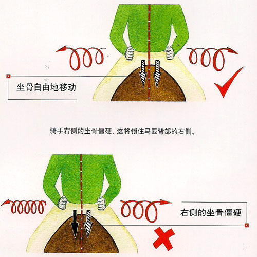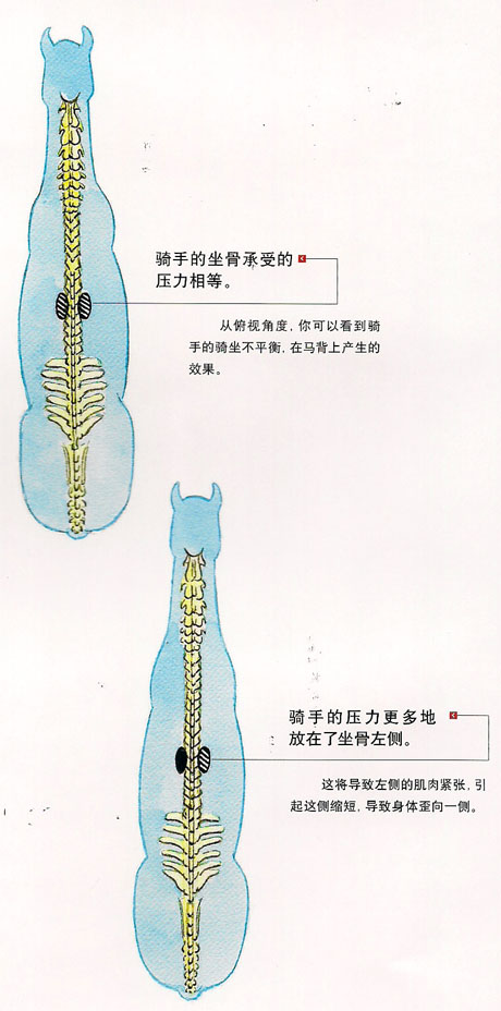 無鞍騎乘建立了人和馬匹之間的親密接觸,會(huì)幫助騎手更好地去理解馬匹的身體是如何工作的。然而若想嘗試無鞍騎乘的感覺,首先確保這匹馬要適合你的騎乘水平(安靜的)然后要你的教練把馬匹牽到安全的場地內(nèi)再騎。 從生理結(jié)構(gòu)上來說,人體骨胳的構(gòu)造是適合于騎乘的,為什么呢?因?yàn)閺难窟@個(gè)位置,人的身體被分成了兩個(gè)部分:人的肋骨和盆骨是分開的。這樣你的身體就有了很大的柔韌性,去吸收馬匹運(yùn)動(dòng)時(shí)所產(chǎn)生的波動(dòng)。你在保持好上半身姿勢的同時(shí),你的下背部及盆骨可以隨著馬匹而運(yùn)動(dòng)。 最初,無鞍騎乘要注意檢查你的身體是不是由于太緊張,而沒有了騎坐,以致感到在馬背上顛簸的很厲害。或身體松松垮垮,把馬匹的背部重重地向下壓。要把你的頭部、脖頸和后背的重量釋放到你的坐骨上,這樣,你跟馬匹的配合才會(huì)好一些。 請一個(gè)教練牽著你的馬匹,自由韁慢步。感覺馬匹的脊椎在你坐骨下是如何運(yùn)動(dòng)的,并且檢查你是否把重量平均地分配在馬匹的脊椎兩側(cè)。如果你習(xí)慣了扭曲的騎馬姿勢,當(dāng)你把姿勢變正直時(shí),你會(huì)感到有點(diǎn)不適應(yīng)。知道怎樣是正確的,就要這樣去練習(xí),叫你的朋友把意見反饋給你。 現(xiàn)在,把雙手指向天空,通過指尖把身體向上伸展開,兩掌心相對,輕輕地向里轉(zhuǎn)動(dòng)你的小拇指,從指尖到整個(gè)上體(除頭部外)的重量全部“懸掛”到你的指尖上。感覺馬匹的動(dòng)作,現(xiàn)在你的騎坐在馬匹的脊椎兩側(cè)上才會(huì)放松下來,你的體重才會(huì)更加平均地分配在馬匹的背部上?,F(xiàn)在把你的胳膊放低一點(diǎn),但肋部不能塌陷。 當(dāng)你騎在馬背上時(shí),你能感覺馬匹肋部隨著后肢的踏進(jìn)而左右搖擺,體會(huì)當(dāng)馬匹的肋部搖到右側(cè)時(shí),你左側(cè)的坐骨和左腿是不是會(huì)往下?謹(jǐn)記:這時(shí)你的左側(cè)肋骨要更挺拔,另側(cè)肋骨也不能塌,坐骨和腿隨著馬運(yùn)動(dòng)。 做以下的訓(xùn)練,直到你能感覺到你的髖部在馬背可以向各個(gè)方向運(yùn)動(dòng)——上、下、后、前、兩側(cè)。 練習(xí)建立深且柔軟的騎坐 在慢步騎乘中,請你的教練牽著馬匹。要他說出以下的問題(每個(gè)問題用2分鐘),以幫助你深化感覺。閉上眼(確保安全的情況下): 你能感覺到馬匹在移動(dòng)你的髖關(guān)節(jié)左側(cè)和左坐骨嗎? (1)向上? (2)向下? (3)向前? (4)向后? (5)向兩側(cè)? 如果你覺得很難體會(huì)到側(cè)向的動(dòng)作,那么就把你的注意力集中到馬匹的肋骨的搖擺上。 現(xiàn)在換成髖部右側(cè)和右坐骨體驗(yàn)一下。 練習(xí)發(fā)展正直的姿勢 右手向上伸展,指尖朝上,當(dāng)你感到馬匹的肋部從右側(cè)擺到左邊時(shí),輕微地把你的右坐骨更深地降低,同時(shí),你的右手指更向上,且右肋骨向右移動(dòng)一點(diǎn)點(diǎn)。感覺肋骨之間的肌肉是如何得到伸展的,在左邊重復(fù)以上的練習(xí)。 |