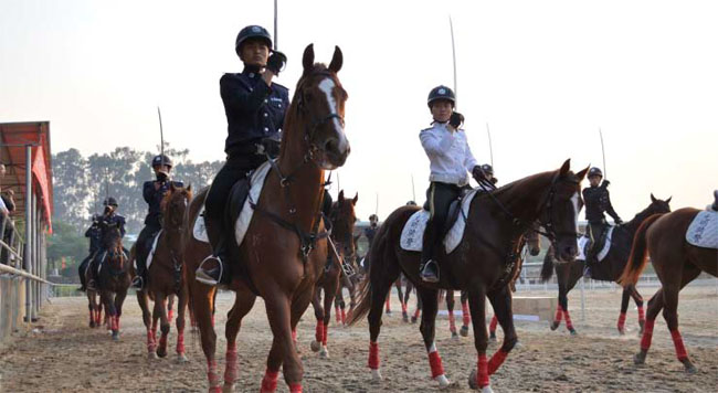在深圳的光明新區(qū),這里不僅有深圳市最具規(guī)模和管理最完善的馬術(shù)俱樂(lè)部——光明騎士會(huì),還有一支已經(jīng)成立了近5 年的深圳市公安局光明分局騎警隊(duì)。這支騎警隊(duì)從成立之初,就明確了與國(guó)際接軌的目標(biāo),男警編制多于女警,并配備網(wǎng)槍、套馬索等非常適合騎警實(shí)戰(zhàn)使用的裝備,功能定位及訓(xùn)練科目均以實(shí)用實(shí)戰(zhàn)為目標(biāo)。這支騎警隊(duì)駐扎的光明騎士會(huì)的創(chuàng)始人周坤先生已經(jīng)玩馬幾十年,能夠得到深圳市公安局光明分局的大力支持,離不開(kāi)他去國(guó)外考察得來(lái)的經(jīng)驗(yàn)以及自己希望能幫助國(guó)家打造出具有“戰(zhàn)斗力”的騎警的堅(jiān)持。今天,光明騎警隊(duì)不僅是深圳這座現(xiàn)代化大都市的“奇景”,也是保障這座口岸城市安全的重要騎警。 亮劍光明新區(qū) 深圳騎巡隊(duì)(即深圳騎警隊(duì))成立于2007 年11 月23 日,2008 年7 月正式更名為騎巡中隊(duì),隸屬特勤大隊(duì)。騎巡中隊(duì)現(xiàn)有民警3 人,戰(zhàn)訓(xùn)人員20 人(其中女戰(zhàn)訓(xùn)隊(duì)員10 人)。騎巡中隊(duì)設(shè)有中隊(duì)長(zhǎng)、副隊(duì)長(zhǎng)各一名,下設(shè)兩個(gè)分隊(duì),四個(gè)戰(zhàn)訓(xùn)小組。現(xiàn)役的馬匹全部來(lái)自香港賽馬會(huì)所贈(zèng)。光明騎士會(huì)負(fù)責(zé)馬匹的日常護(hù)理及騎巡隊(duì)員的馬術(shù)訓(xùn)練。騎巡中隊(duì)主要負(fù)責(zé)新區(qū)中心城區(qū)及偏僻路段的治安巡邏防控、維穩(wěn)沖突、重大慶典和警務(wù)活動(dòng)的安保警衛(wèi)及警察公共關(guān)系建設(shè)等工作。 說(shuō)起這支騎警隊(duì),俱樂(lè)部的創(chuàng)始人周坤贊不絕口?!拔覀冞@支騎警隊(duì)是和世界接軌的,我們要打造中國(guó)第一支具有實(shí)戰(zhàn)能力的騎警隊(duì)。”周坤說(shuō):“騎警隊(duì)從成立的第一天起,就定位的是能夠出警,能夠抓捕罪犯,這幾年我們的訓(xùn)練都是秘密練兵?!敝芾じ嬖V我,他在歐洲考察的時(shí)候,發(fā)現(xiàn)英國(guó)皇家騎警的編制相當(dāng)大,而且具有很強(qiáng)的綜合性,騎警不僅僅單純的騎馬,還能操控更多現(xiàn)代化工具。所以,他始終堅(jiān)信,騎警將來(lái)定會(huì)成為一個(gè)常規(guī)的警種。 “我們騎警策騎的都是純血馬,是香港賽馬會(huì)無(wú)償提供給我們的?!敝芾ふf(shuō):“因?yàn)槲覀儼堰@些馬練成了警用馬,也讓香港賽馬會(huì)的總獸醫(yī)看到之后嘆為觀止,他說(shuō)我們打破了純血馬不能做警用馬的慣例。因?yàn)榫民R需要穩(wěn)定,我們當(dāng)時(shí)訓(xùn)練成功的8 匹馬不怕煙火,什么陣勢(shì)都無(wú)所畏懼。要知道,馬沖過(guò)來(lái)的氣勢(shì)很唬人的?!?/div> 訓(xùn)練一匹警用馬,大概需要一年的時(shí)間。周坤用“國(guó)際標(biāo)準(zhǔn)”這四個(gè)字闡述了他的培訓(xùn)理念,“比如我們訓(xùn)練中有炮仗,有彩旗,有音樂(lè),有人群。為了讓馬減少‘恐懼’,我們?cè)诘厣戏胖玫V泉水瓶子,通過(guò)調(diào)教最終讓馬‘放心’地跑了過(guò)去。當(dāng)訓(xùn)練成功的馬做到一些車輛都無(wú)法完成的事情時(shí),我覺(jué)得自己在做一件很有意義的事情?!?/div> 深圳騎警隊(duì)的騎警們?cè)谌腙?duì)之前都不會(huì)騎馬。所以,光明騎士會(huì)指派了專門(mén)的教練負(fù)責(zé)訓(xùn)練騎警隊(duì)。騎警隊(duì)的建立,和光明新區(qū)的地理環(huán)境還是有一定關(guān)系的。光明新區(qū)原本是寶安區(qū)的光明農(nóng)場(chǎng),整個(gè)亞洲最大的荔枝林就在這里。荔枝林很大,但巡警車是開(kāi)不進(jìn)去的。所以,周坤就開(kāi)始考慮能不能騎著馬進(jìn)去巡邏,而且深圳當(dāng)?shù)伛R不多,很多人都比較怕馬,騎巡隊(duì)就此誕生了。“當(dāng)然,這樣一個(gè)騎巡隊(duì)肯定是要經(jīng)過(guò)深圳市公安局批準(zhǔn)的。只要沒(méi)有特殊任務(wù),騎警隊(duì)從周一上午開(kāi)始一直到周五都會(huì)在騎士會(huì)里訓(xùn)練。三年過(guò)去了,現(xiàn)在騎警隊(duì)的隊(duì)員們騎術(shù)已是駕輕就熟,他們的馬也適應(yīng)了這個(gè)環(huán)境,時(shí)常會(huì)他們騎著馬去巡邏。2010 年,騎警隊(duì)在山區(qū)巡邏時(shí)發(fā)現(xiàn)了一名可疑人員,騎警在馬上用網(wǎng)槍將其擒獲,最終破獲案件,立功受獎(jiǎng)。騎警隊(duì)還曾經(jīng)成功抓捕過(guò)一名持槍歹徒,為光明新區(qū)的治安防控工作做出了突出貢獻(xiàn)。 樸實(shí)的騎士精神 來(lái)到光明騎士會(huì)的當(dāng)天正趕上香港賽馬會(huì)的贈(zèng)馬儀式。這座已經(jīng)成立了7年光景的俱樂(lè)部已經(jīng)成為香港賽馬會(huì)在內(nèi)地建立的首個(gè)騎士培訓(xùn)基地,每年計(jì)劃培養(yǎng)4000名騎手和管理人員。光明騎士會(huì)的創(chuàng)始人周坤先生是66 屆的“老三屆”畢業(yè)生,在上山下鄉(xiāng)的那6 年知青生涯中,周坤喜歡上了馬?!拔耶?dāng)時(shí)插隊(duì)在寧夏,當(dāng)飼養(yǎng)員,負(fù)責(zé)喂很多牲口,包括馬?!痹谀莻€(gè)特殊年代,人馬之間的距離要比人與人之間透明得多,“那時(shí)候我更喜歡讓我喂養(yǎng)的馬聽(tīng)聽(tīng)我的心里話,時(shí)間久了,緣分也就注定了?!?/div> 改革開(kāi)放后,周坤到北